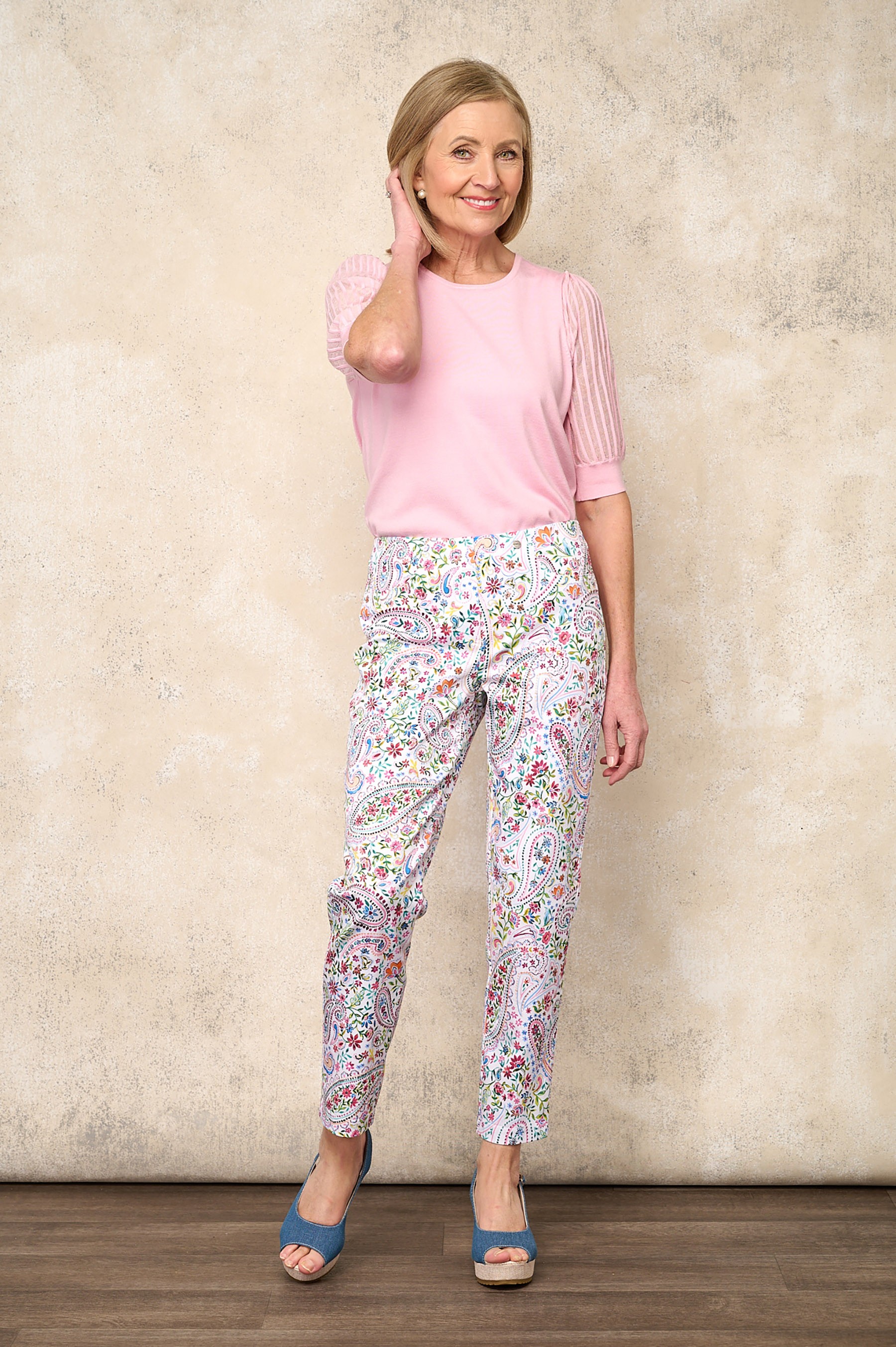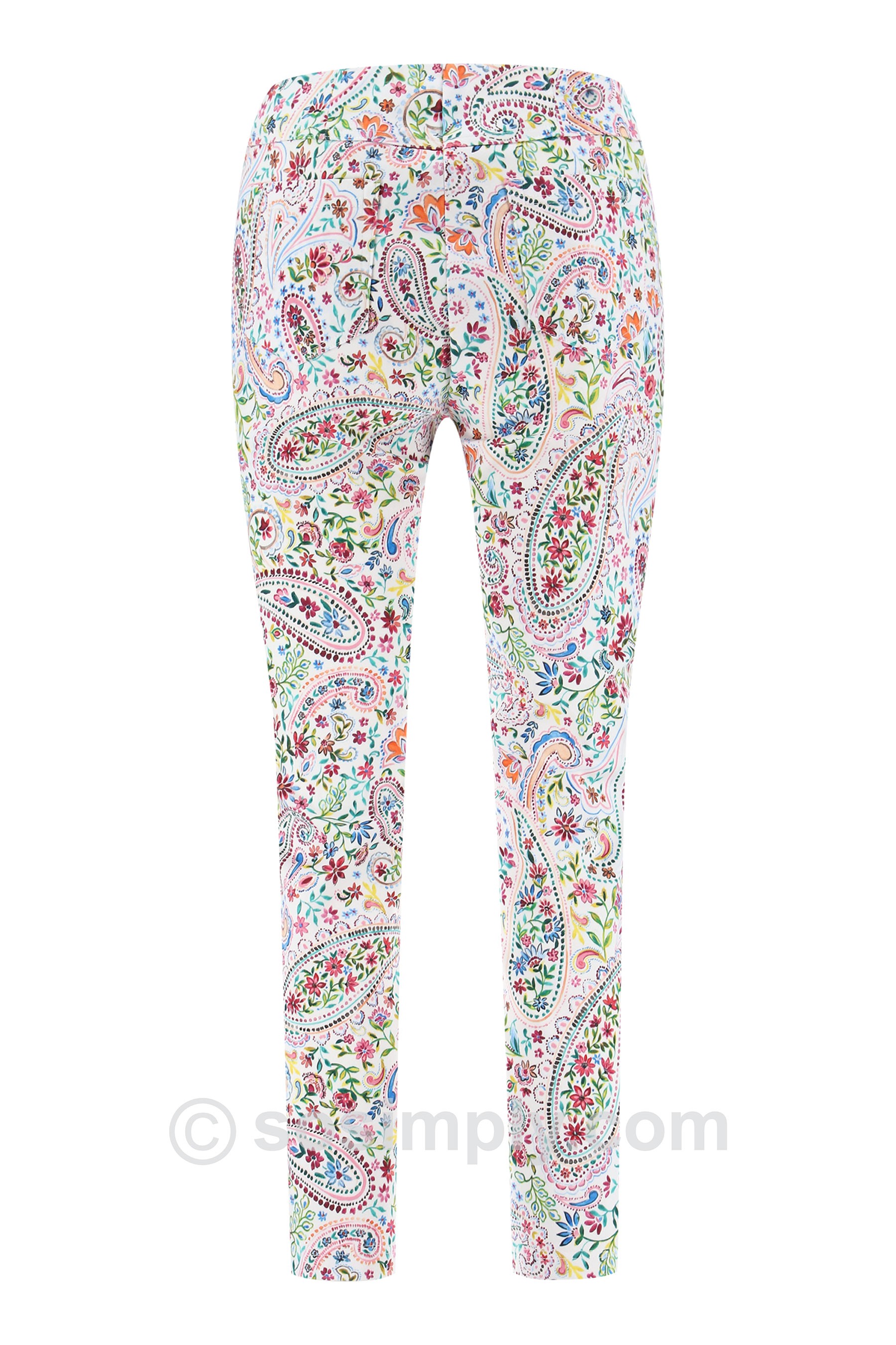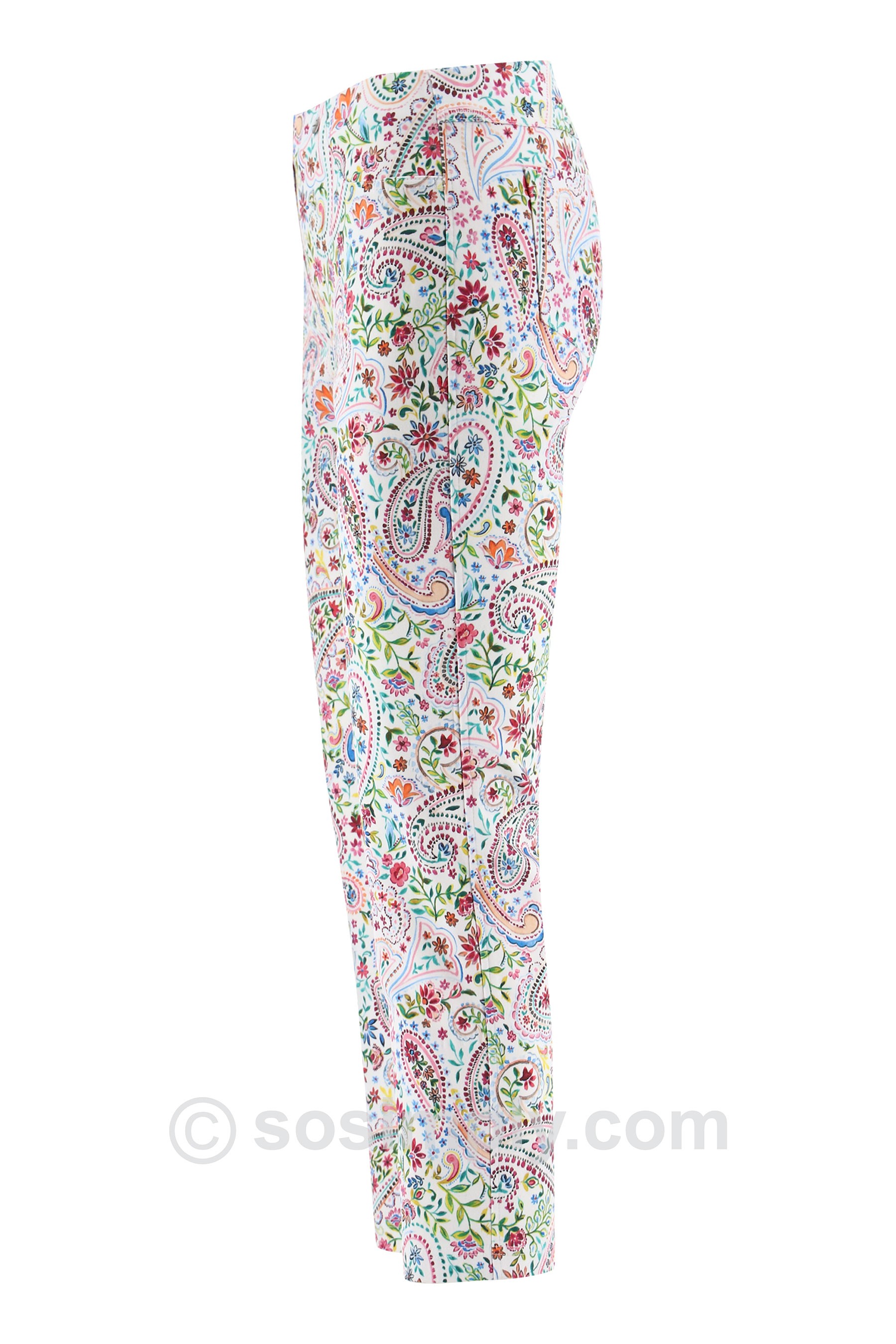 Fresh, feminine, and effortlessly wearable, the Bella 09 Priva Ankle Grazer showcases the same vibrant paisley floral pattern as the coordinating Priva Happy Jacket, creating a beautifully cohesive look. Designed with a flattering straight-leg silhouette, these ankle-grazing trousers offer a polished yet relaxed feel—perfect for spring and summer dressing.