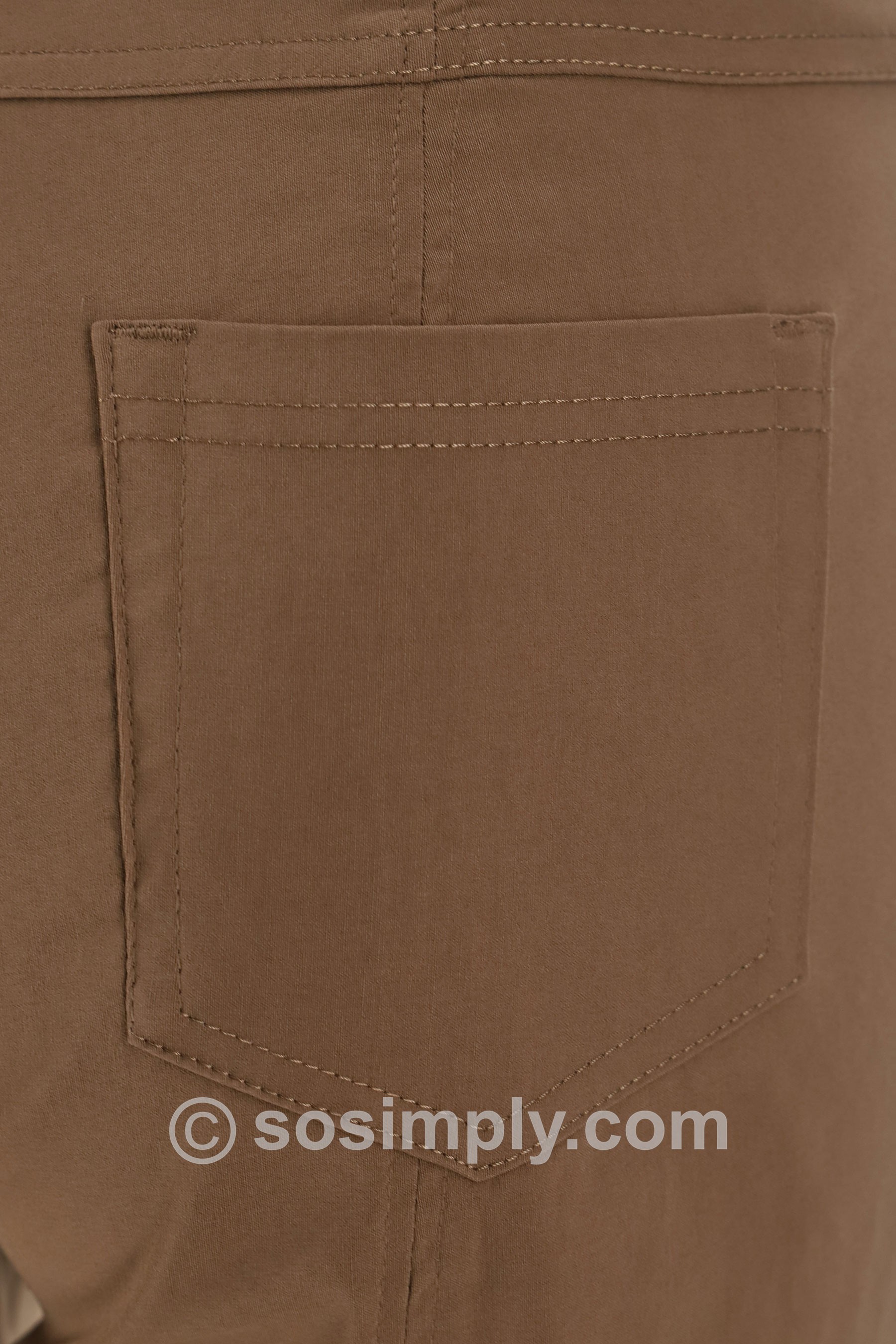 • Easy, comfy pull-on design with a neat false zip front flap concealed flat waistband and a double-stitched seam on the back of the leg, creating a perfect shape.