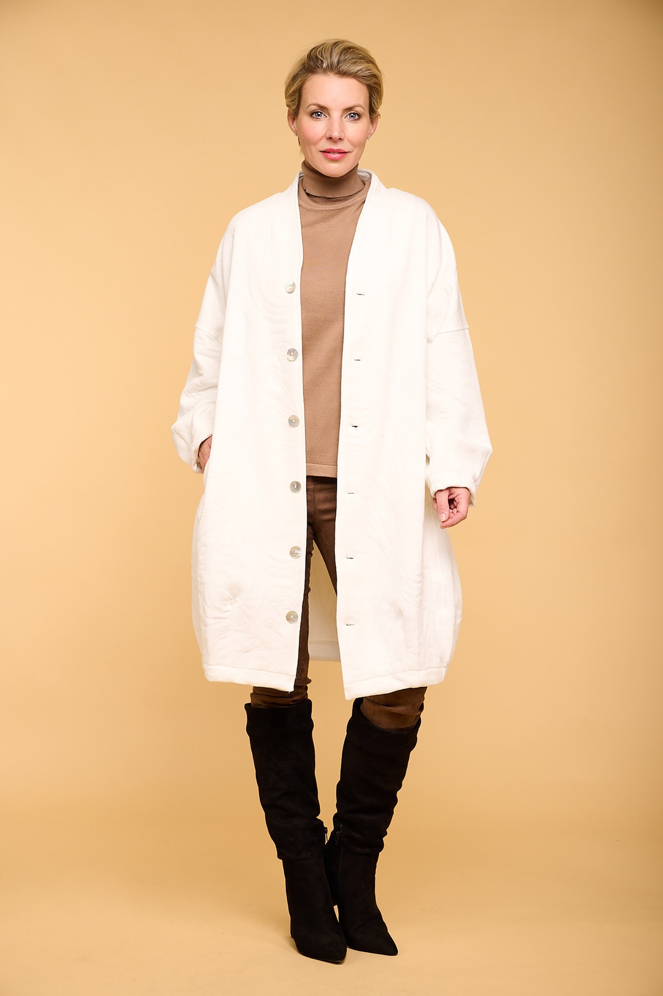 Elevate your outerwear collection with our button detailed coat, a chic and versatile piece that combines timeless design with modern flair. This coat is crafted to add a touch of sophistication to any outfit, making it an essential addition to your wardrobe.