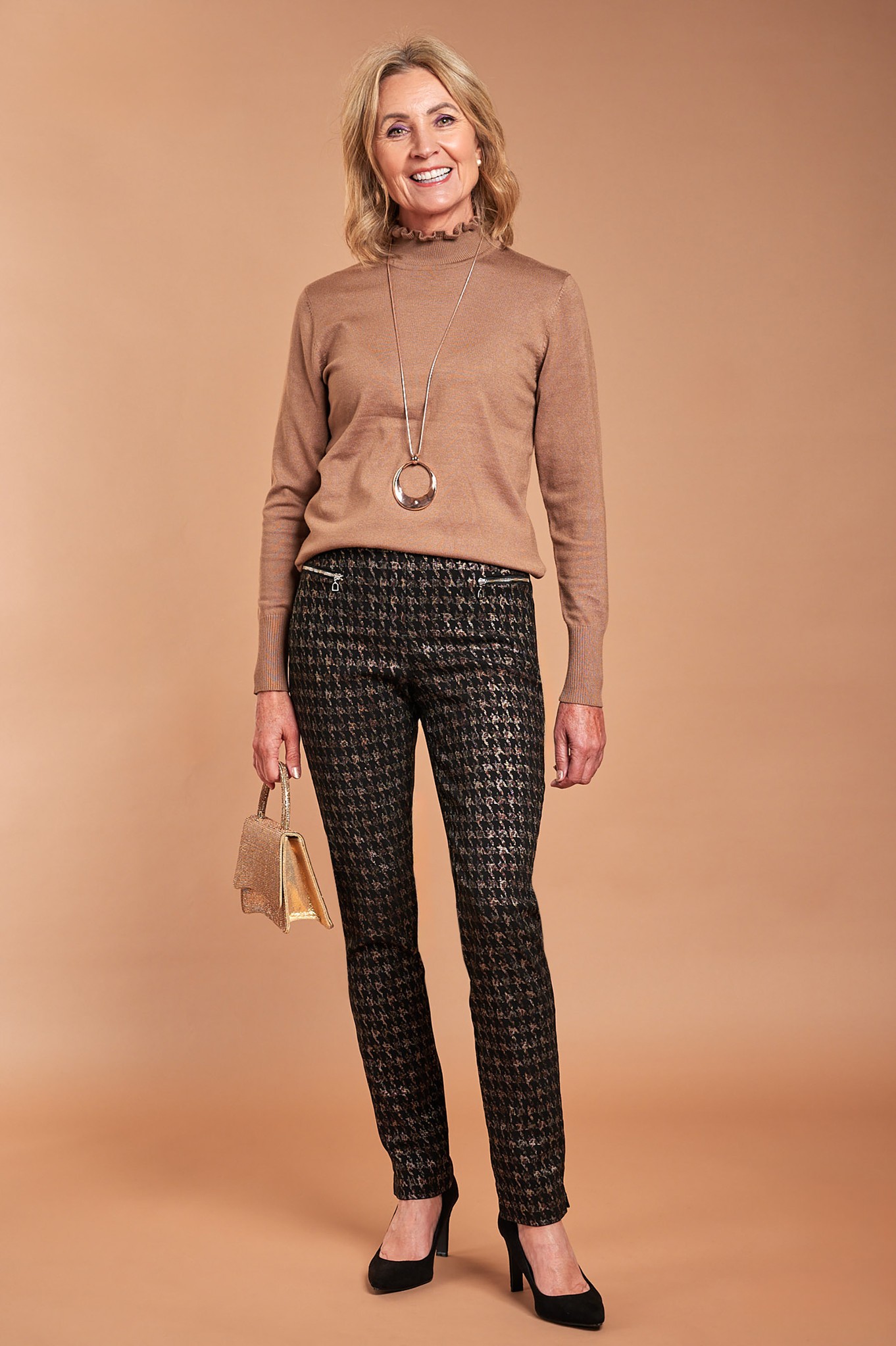 • Discover the "Mimi" stretch pull-on glamour trousers from Robell's Autumn Winter collection, now available in a modern slim straight leg fit with a captivating geometric pattern.
