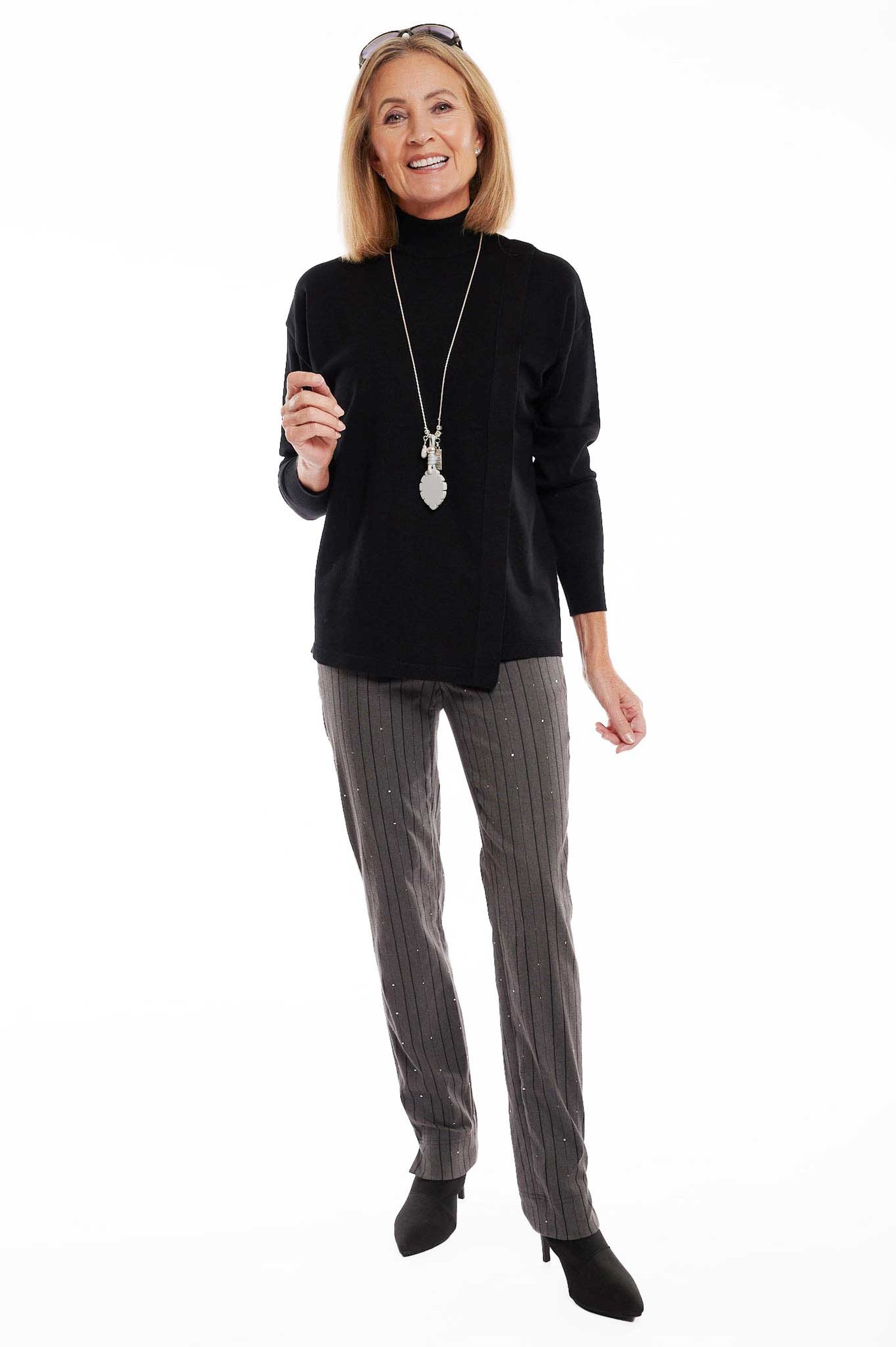 These pull-on trousers are a true wardrobe must-have. In a striped pattern with a hint of sparkle. Designed for a comfortable fit, they flatter in all the right places. Beautifully embellished with a striped pattern.