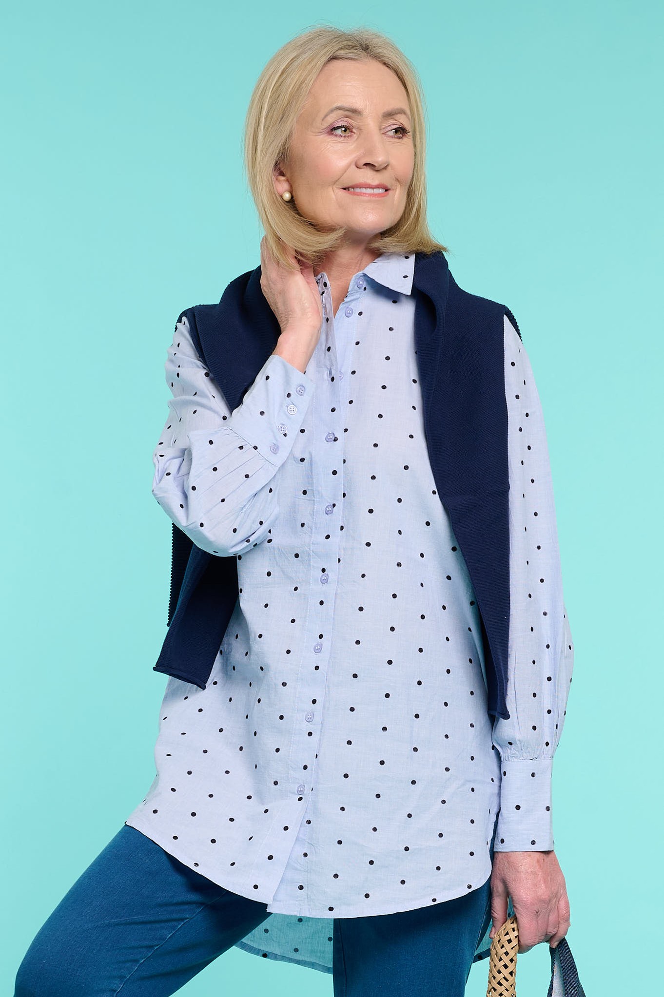 Crisp cotton keeps the straight-fitting shape of our Amara shirt. It has a curved hem at the back for easy layering. Our cotton shirt always adds polish to every look. With an elegant neat shape, it is also ultra light, wearable and layers like a dream.