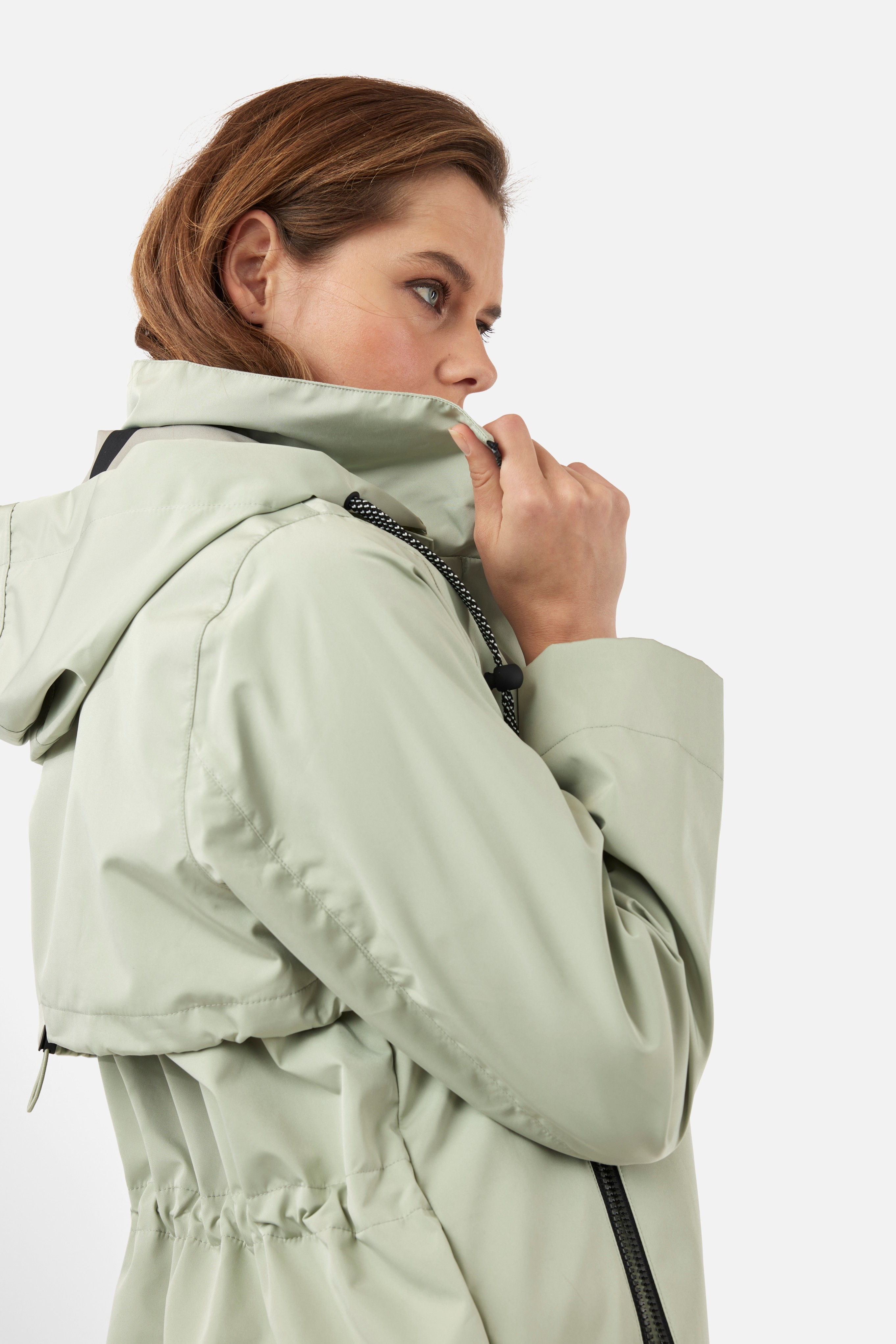 - Fixed hood with adjustable drawcords