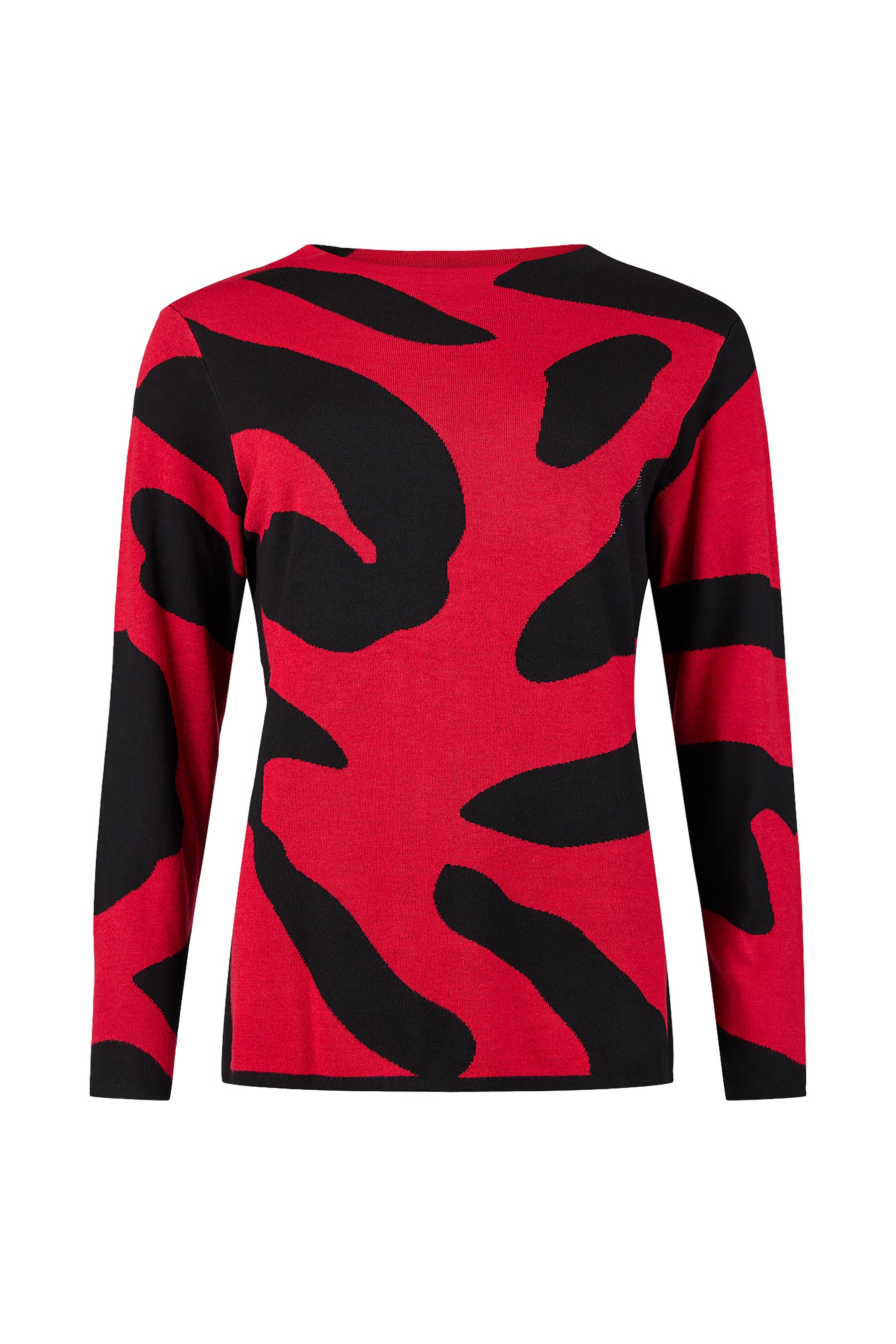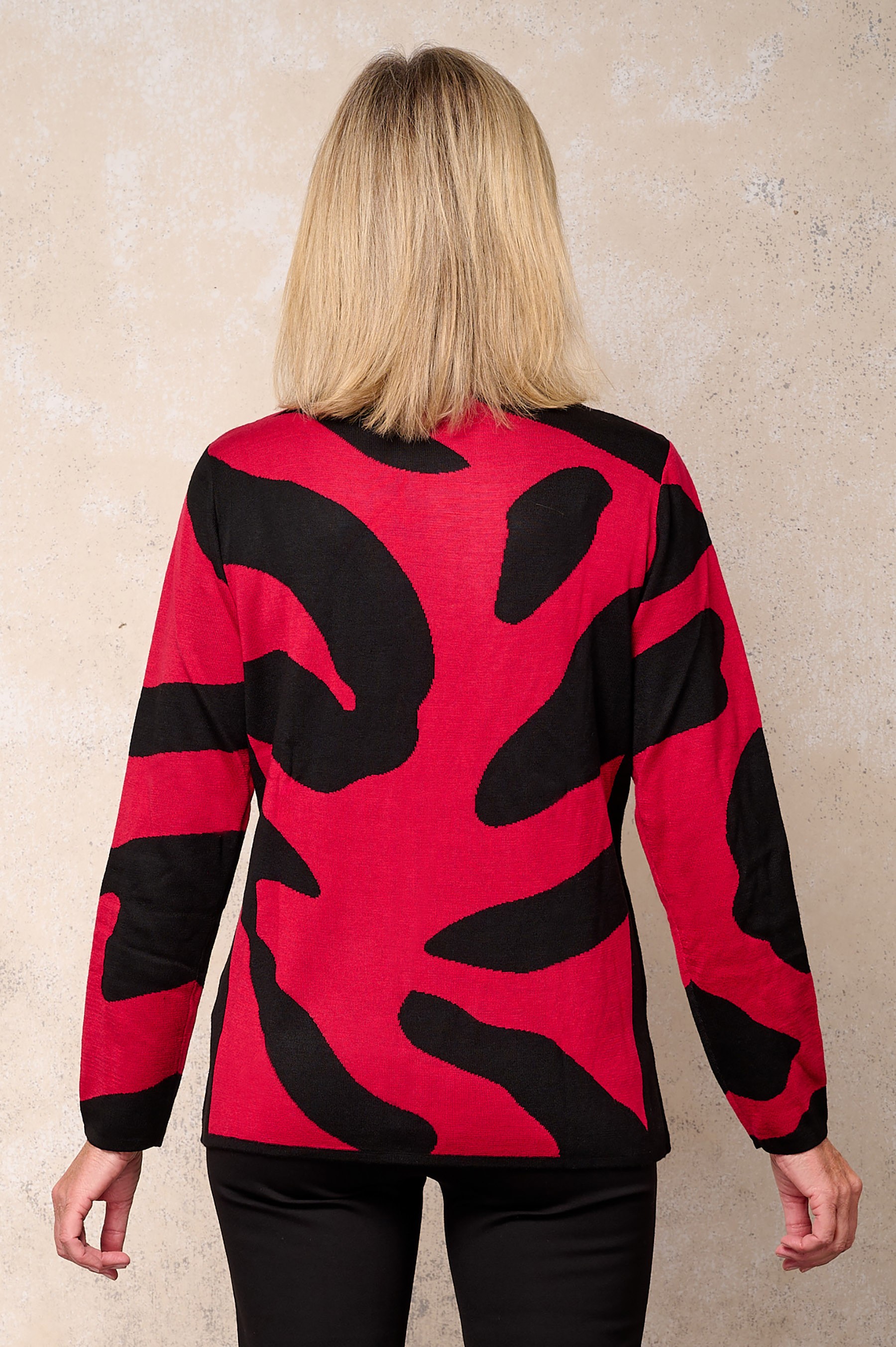 Bold yet sophisticated, the Habella Izabel Animal Pattern Jumper makes a striking addition to your knitwear collection. Showcasing a vivid red and black animal print, this statement piece is elevated with sequin-embellished black detailing that adds just the right amount of glamour.