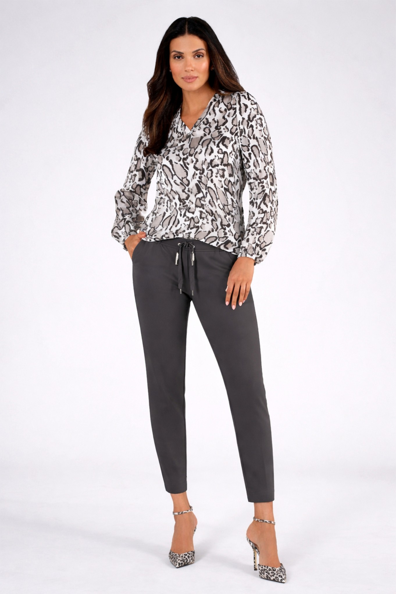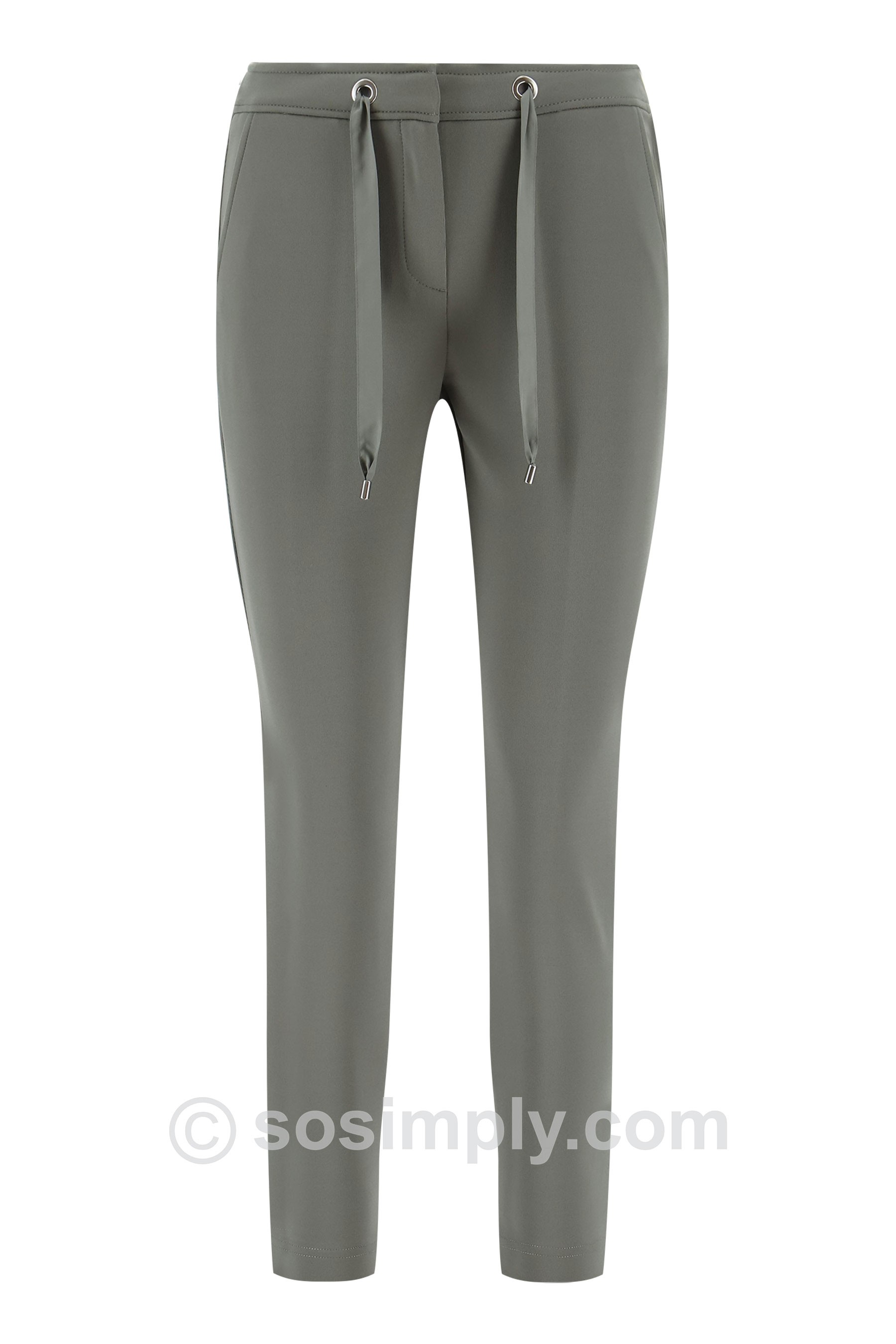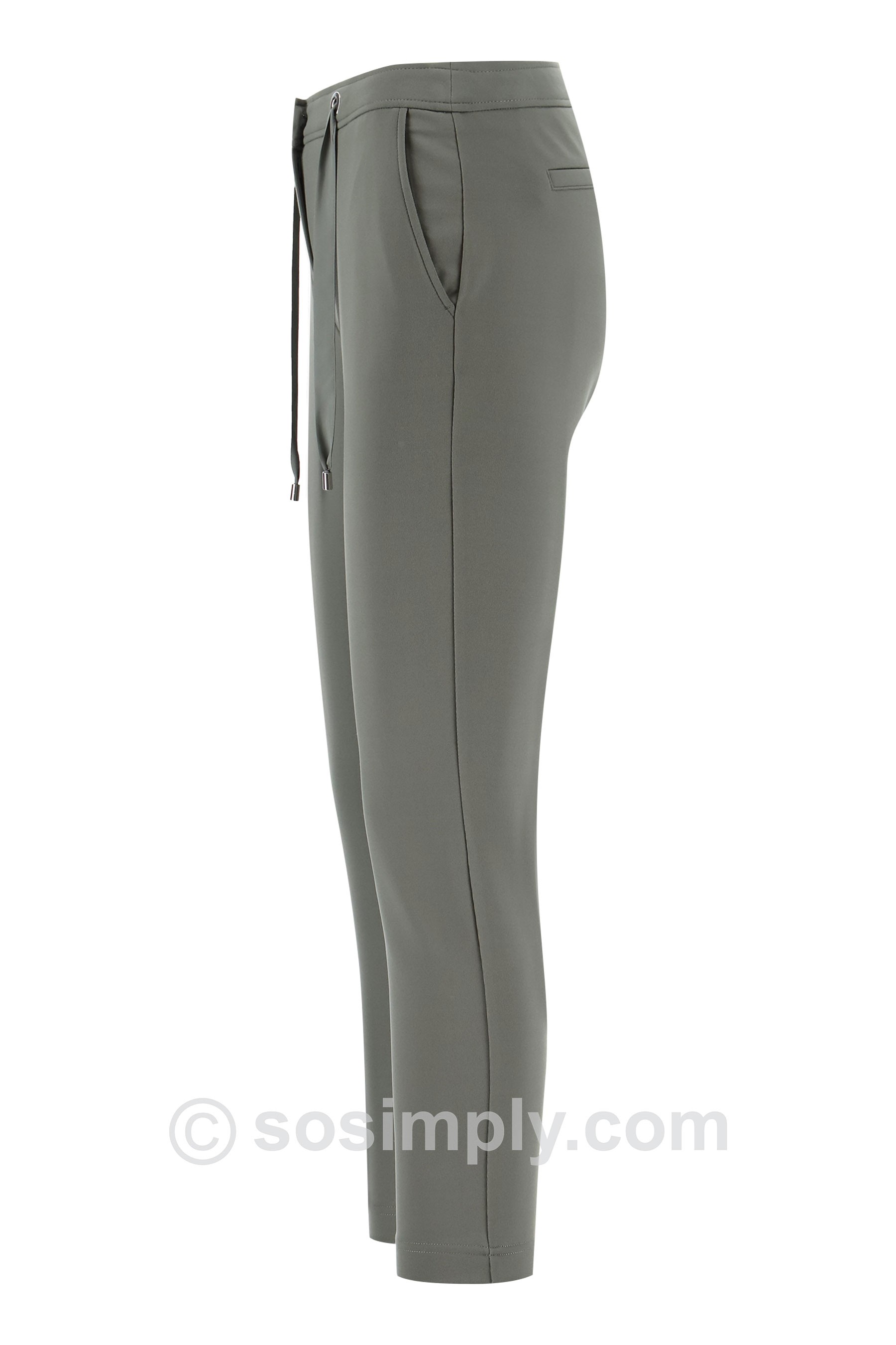 The clean design is elevated with a modern drawstring waist featuring subtle eyelet detailing, combining practicality with understated sophistication. Cut to a cropped ankle length, these versatile trousers pair beautifully with soft blouses, tailored blazers, or relaxed knitwear, making them an essential foundation piece for a curated wardrobe.
