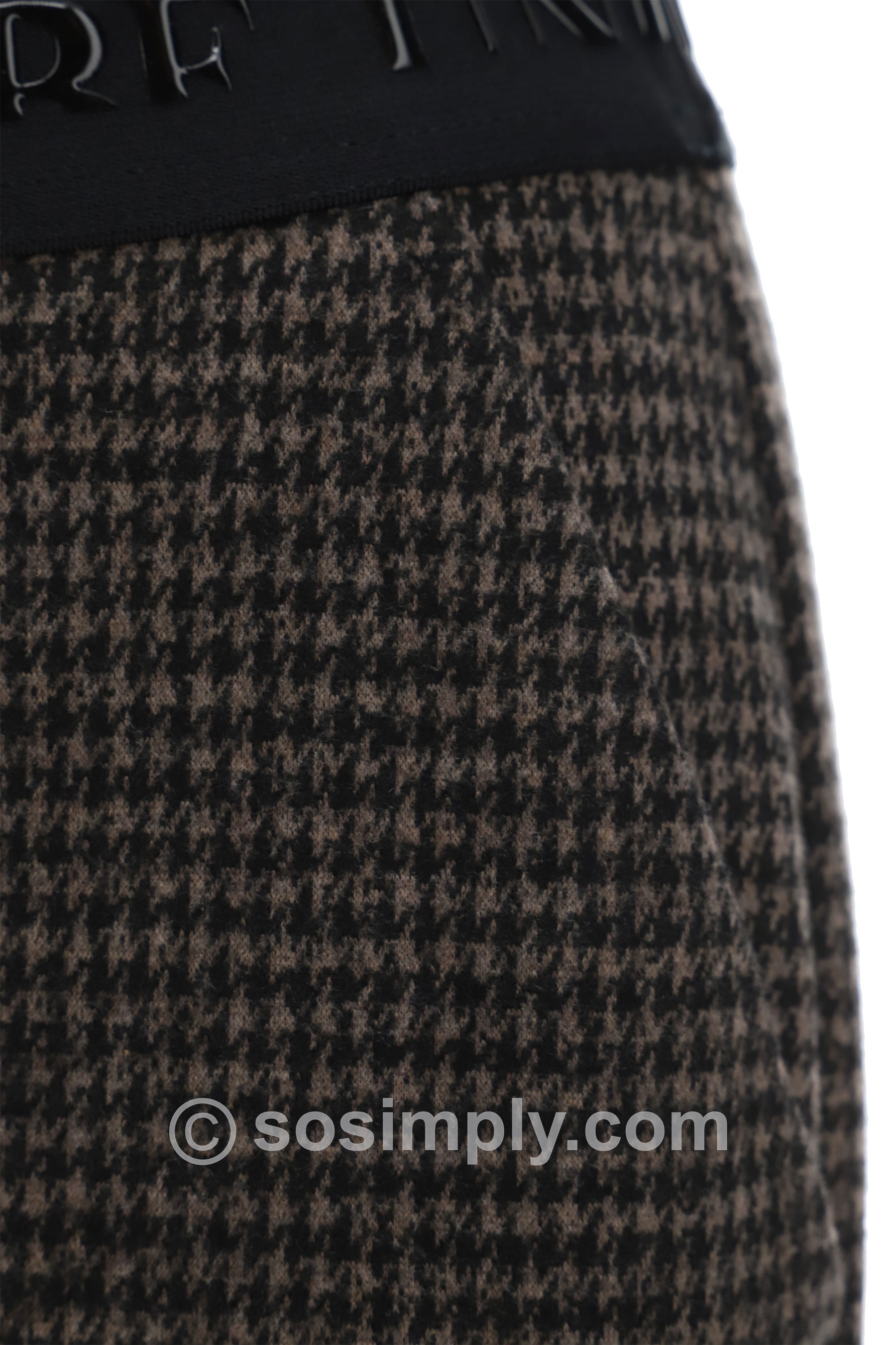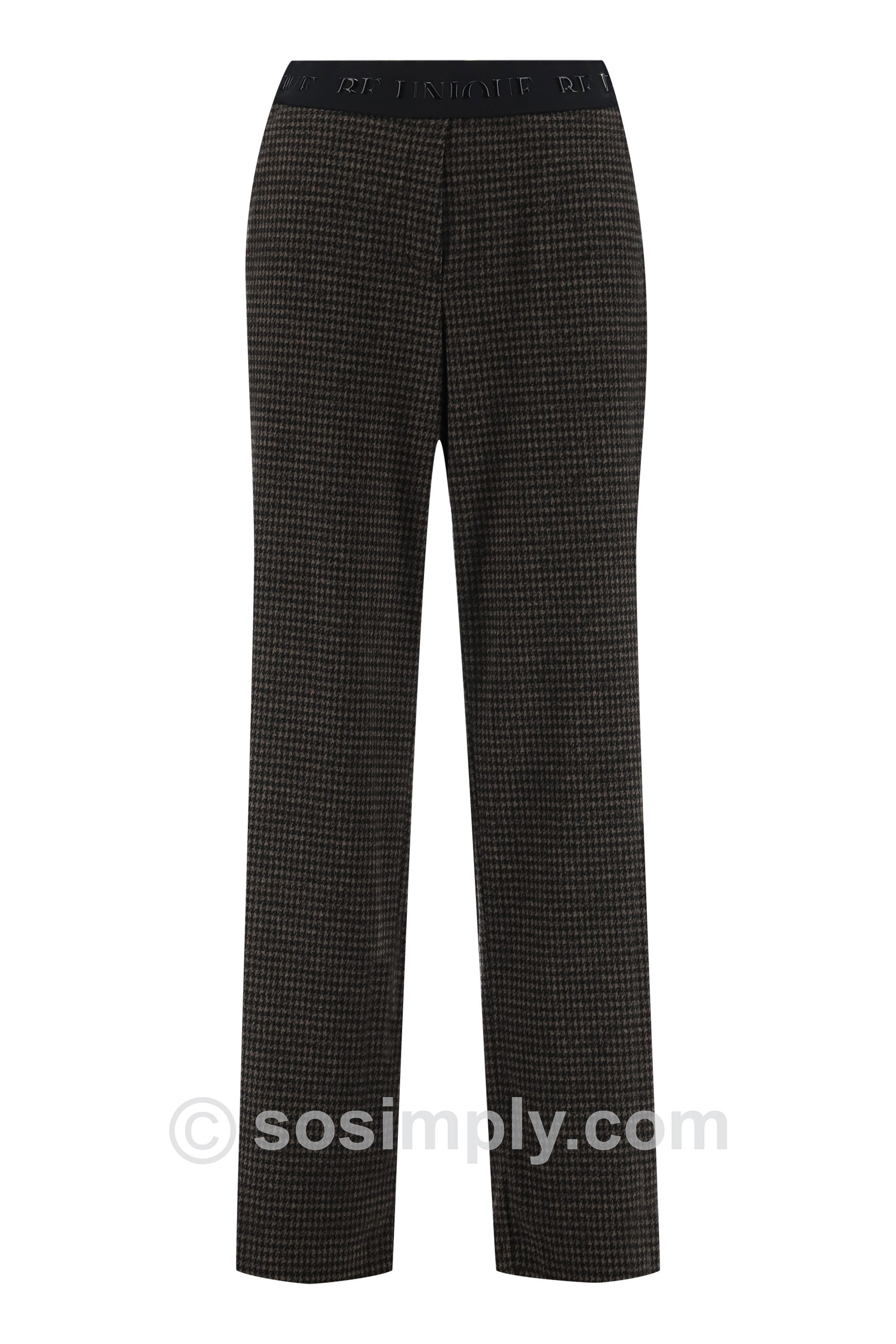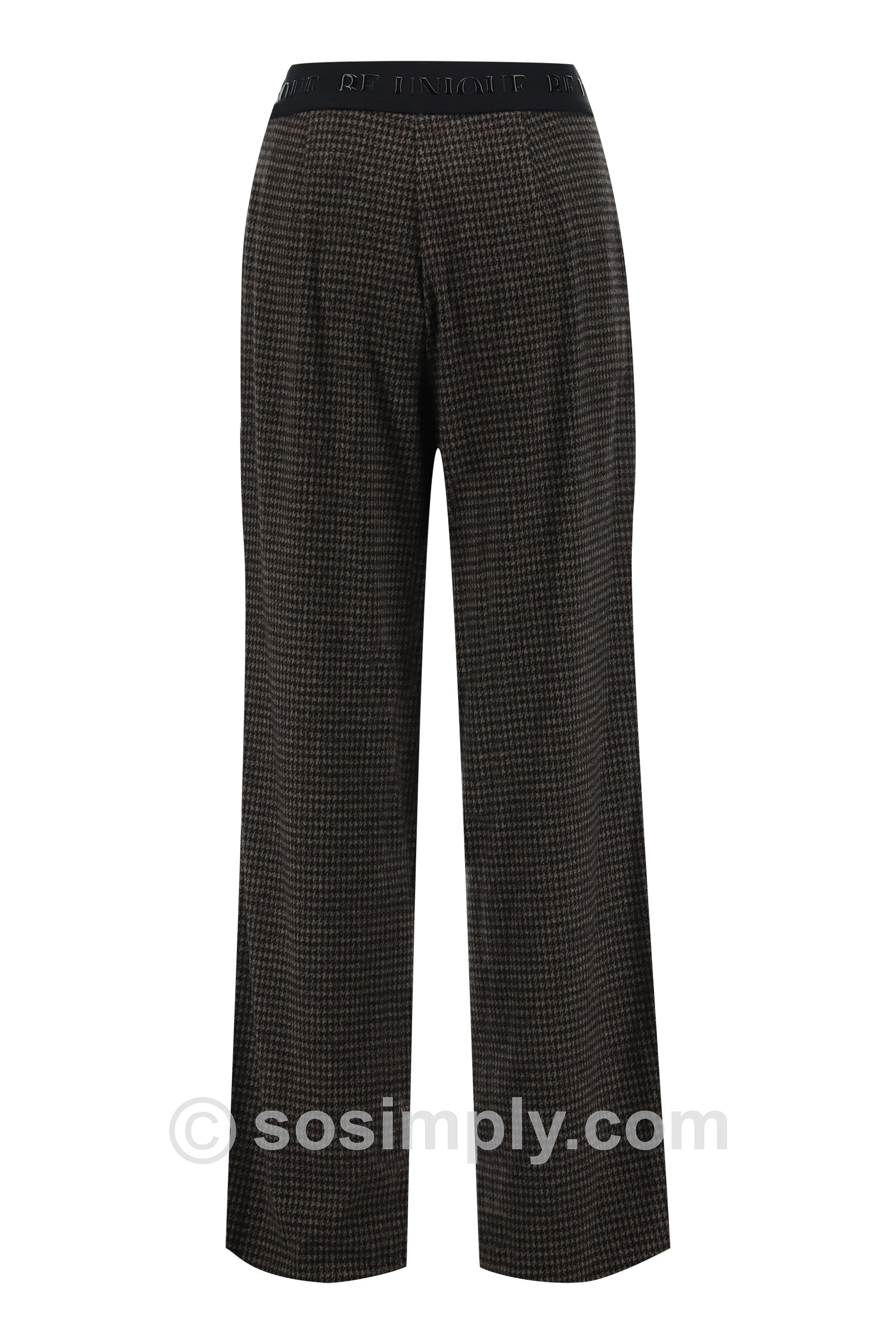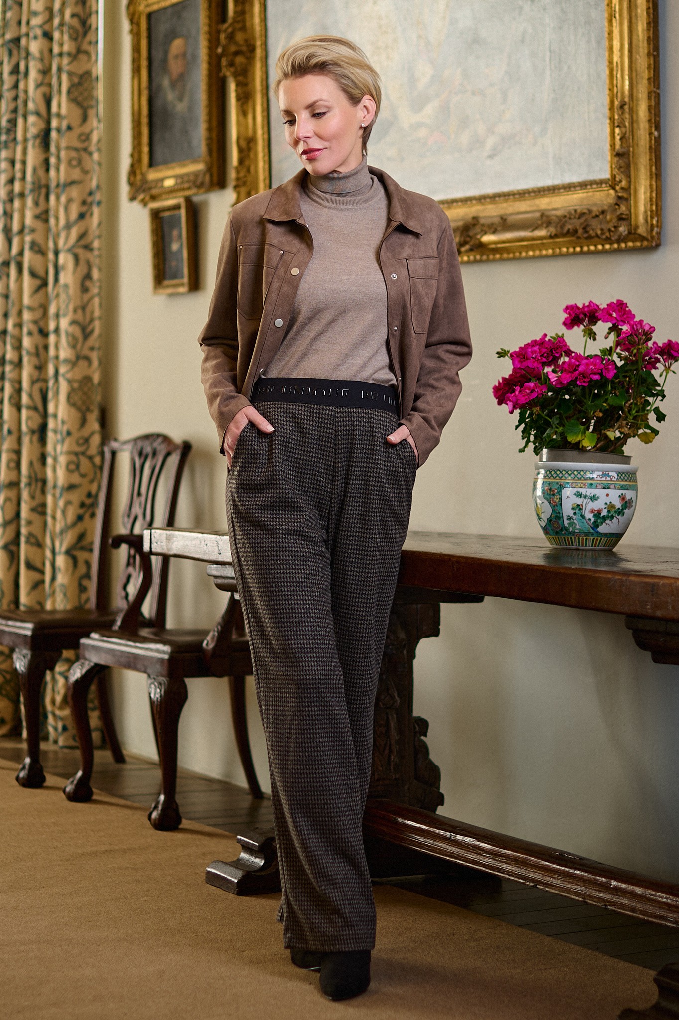 Crafted in a dark grey and chocolate-brown houndstooth weave, the Britt features a relaxed straight-leg silhouette that drapes beautifully from hip to hem. The pull-on design, complete with a sleek contrast waistband and discreet side pockets, ensures a smooth, flattering fit without compromising on polish.