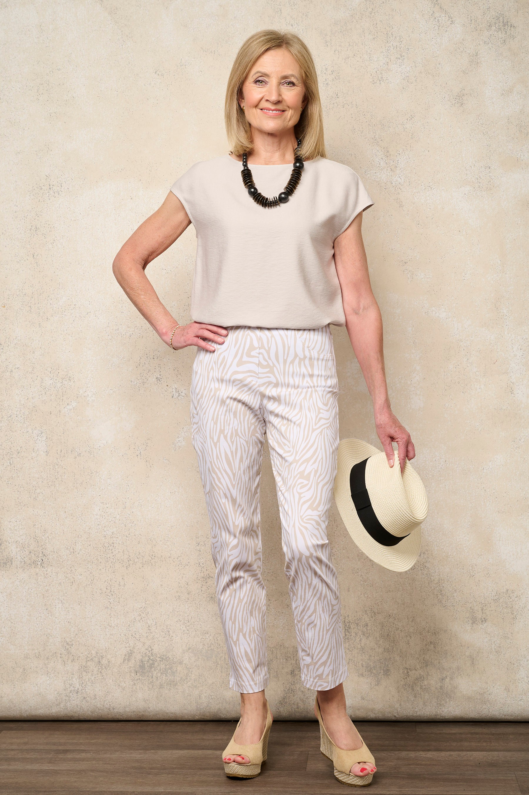 Bring effortless elegance to everyday styling with the Robell Bella Adia Animal Ankle Grazer, a refined trouser that blends contemporary print with the comfort and fit Robell is renowned for. The subtle animal-inspired pattern in soft neutral tones offers understated sophistication, making this piece a versatile addition to any boutique collection.