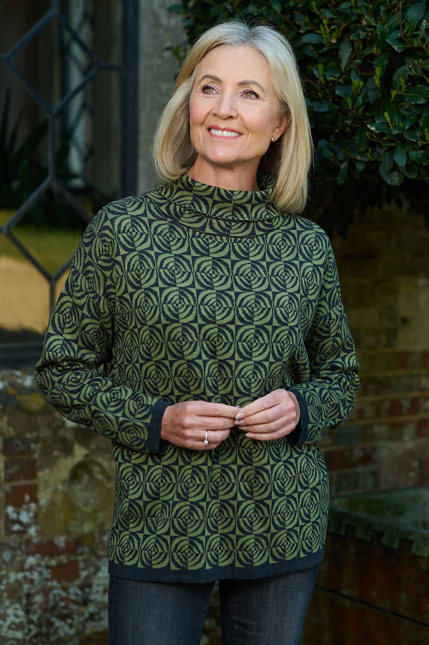 Step into bold Nordic style with the Sunday Fredrikke Geometric Roll Neck. Featuring an all-over olive and black geometric pattern, this knit is as striking as it is versatile. The ribbed roll neckline and full-length sleeves offer warmth and comfort, while the regular fit ensures effortless layering.