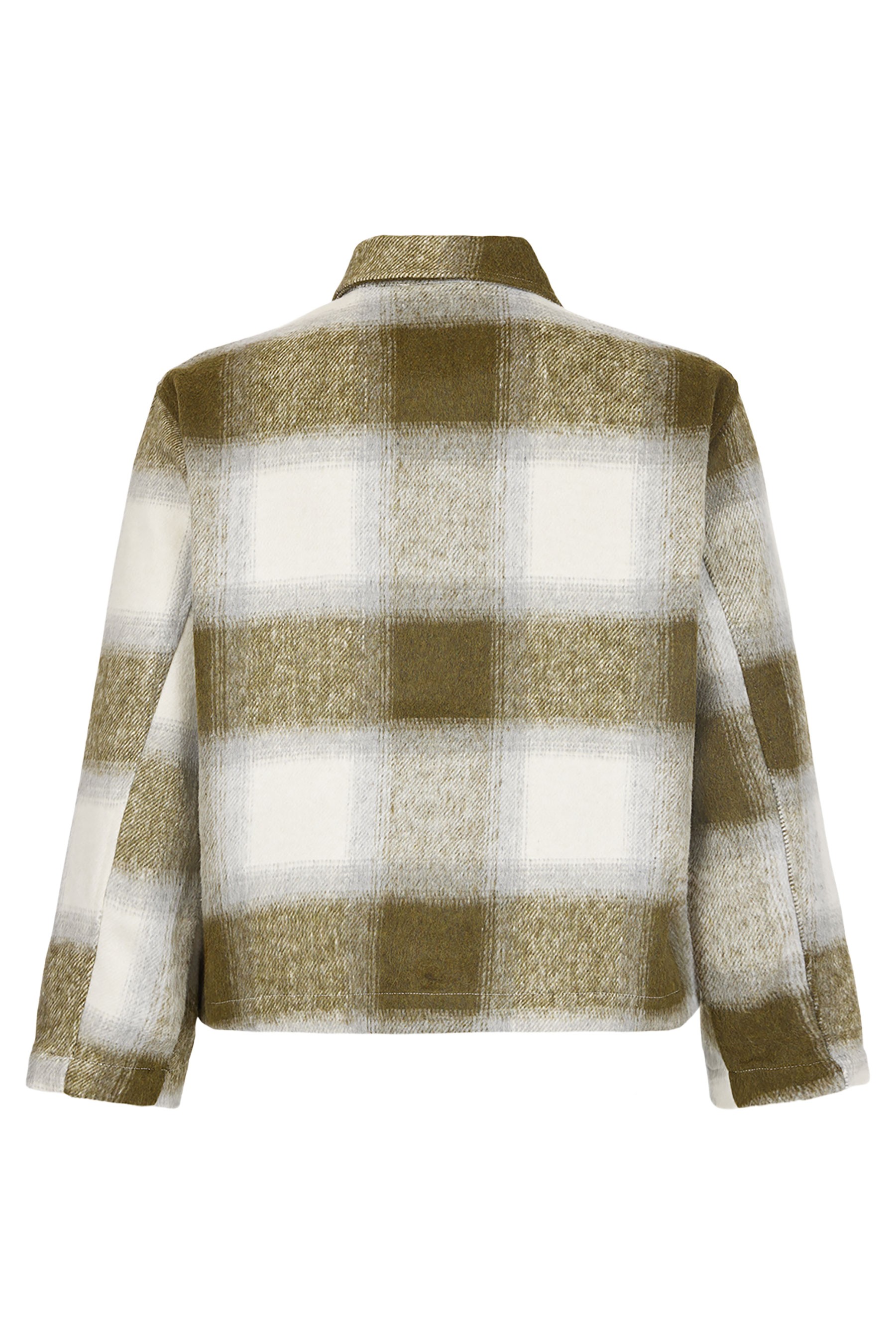 Crafted from a soft and warm 100% polyester blend, this jacket offers both comfort and style. The classic plaid pattern in earthy tones adds a touch of sophistication, while the relaxed fit provides a flattering silhouette.