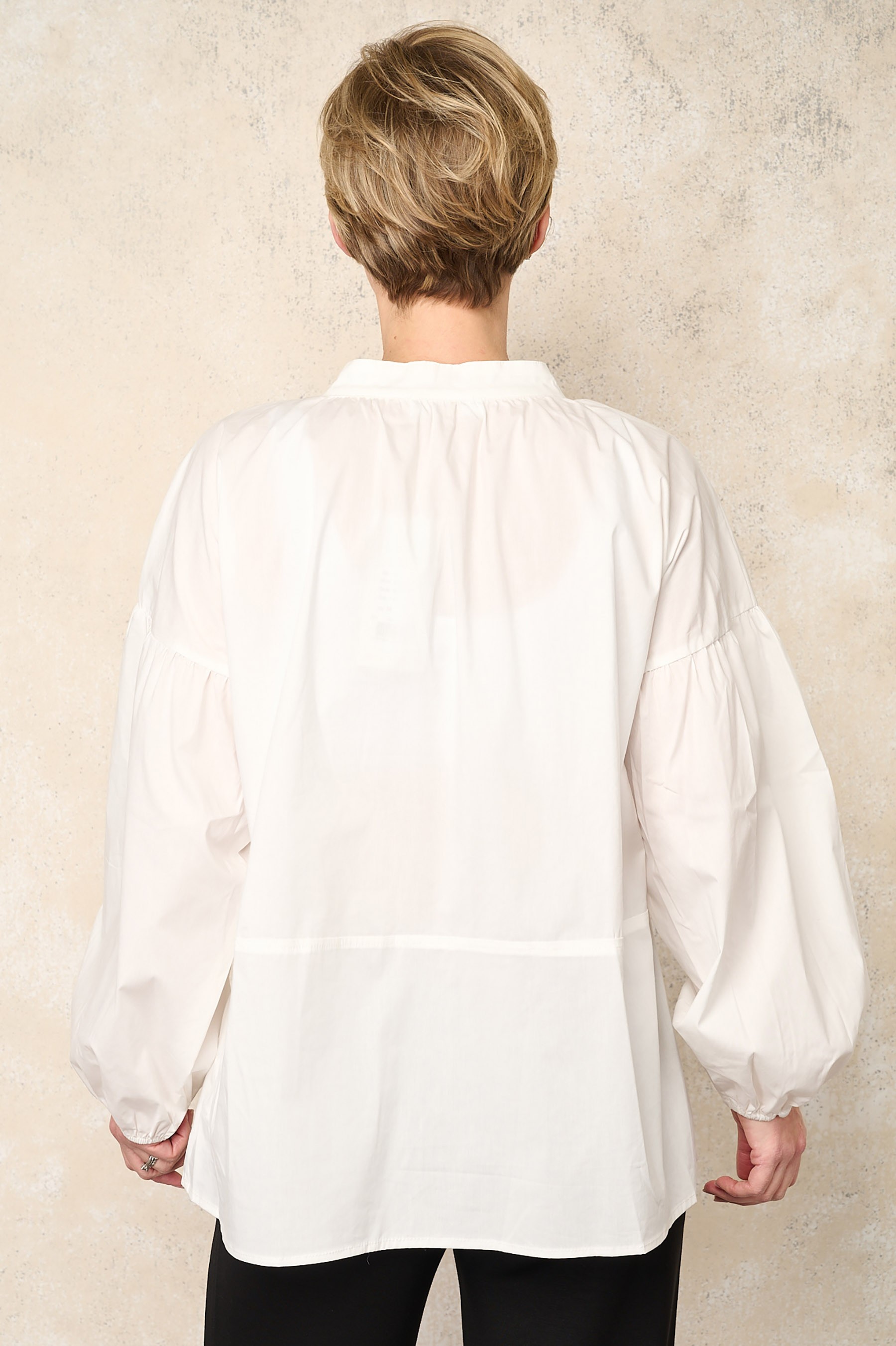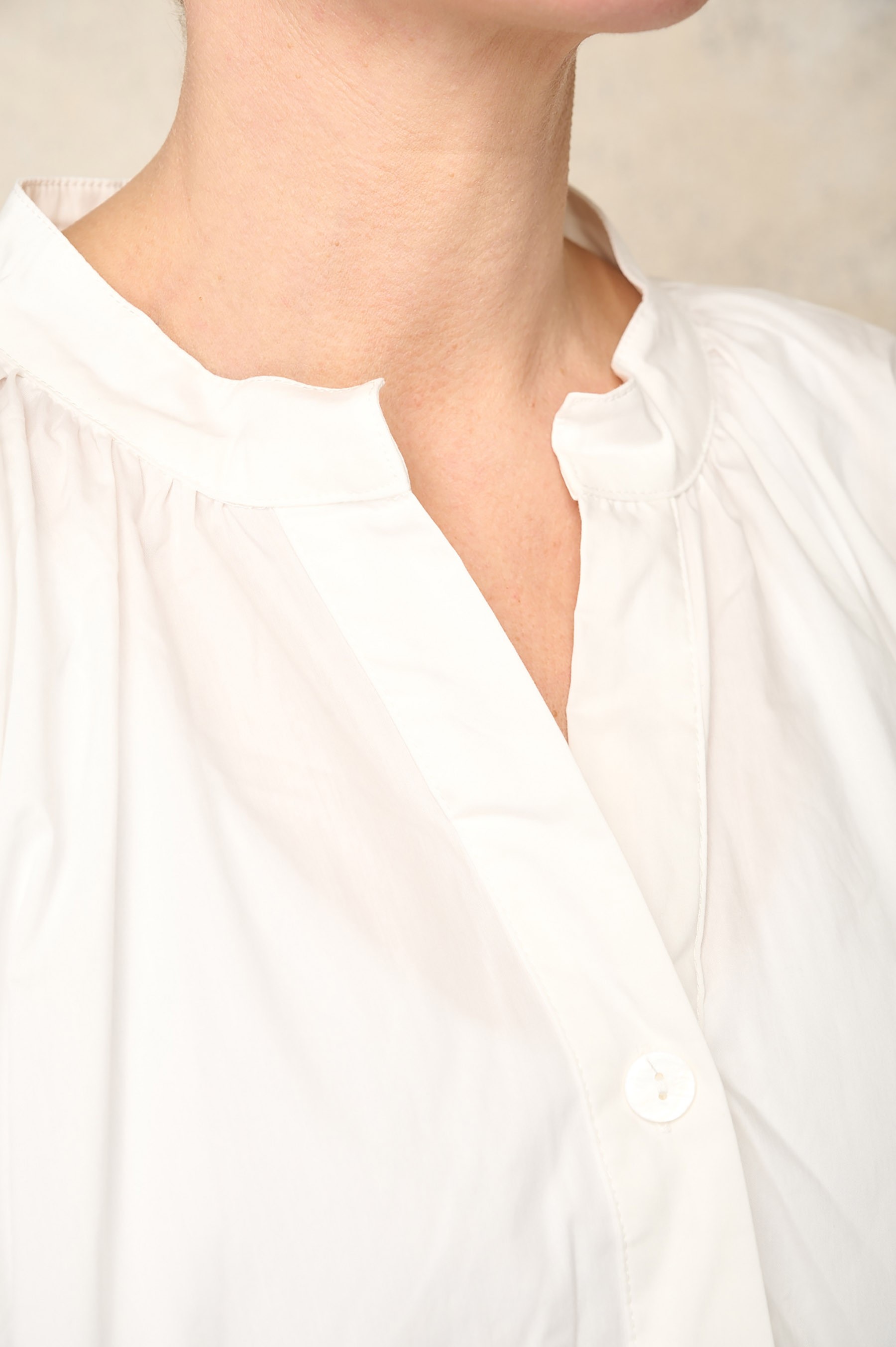 Crafted from a buttery-soft cotton jersey blend, the fabric feels smooth against the skin while offering comfortable stretch for all-day wear. A clean mandarin neckline adds a modern, understated edge, balanced by full-length sleeves for a polished yet relaxed look. Finished with a single front patch pocket, this top blends practicality with minimalist NOEN style.