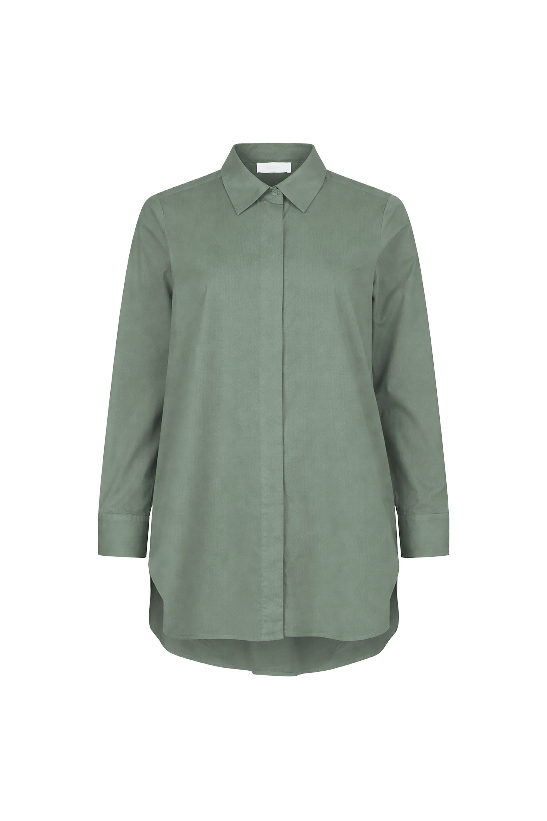 It features a classic point collar, long sleeves, and a curved hem for an easy, flattering silhouette. A box split pleat at the back adds extra comfort and movement.