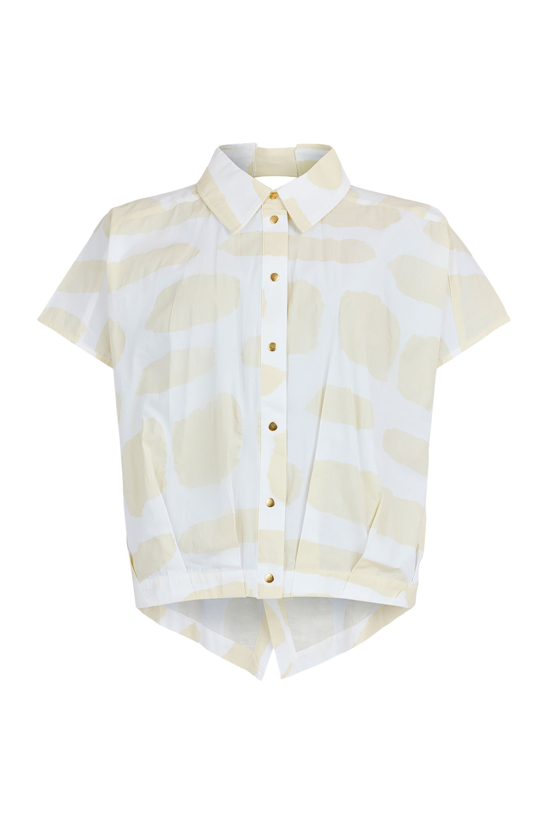 Effortlessly relaxed with a soft bohemian influence, the Noen Boho Dune Cotton Shirt reflects modern Nordic simplicity with an easy, feminine shape. Crafted from breathable 100% cotton, this lightweight shirt features a gentle A-line silhouette that drapes beautifully for a flattering and comfortable fit. The subtle abstract print in soft natural tones enhances its laid-back elegance, while matte gilt buttons add a refined finishing touch. A distinctive cut-out back detail introduces a contemporary twist, adding visual interest while maintaining an effortless feel. Perfect for warm days and relaxed styling, this versatile piece pairs easily with linen trousers, denim, or skirts for an effortlessly polished look.