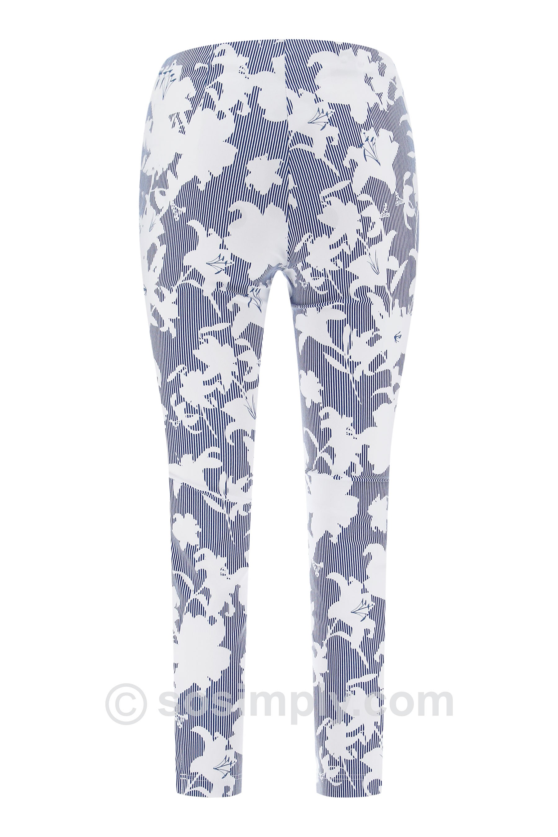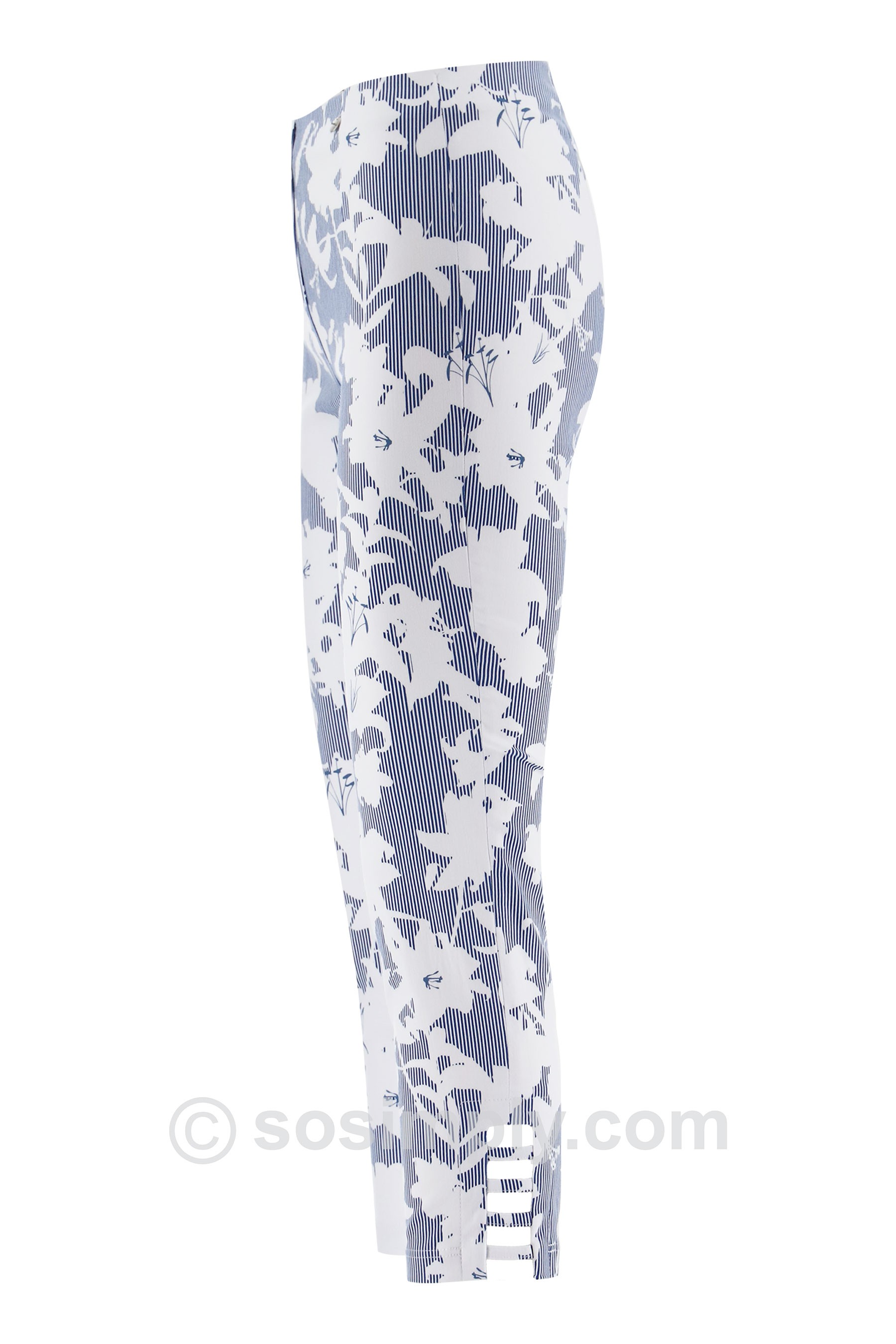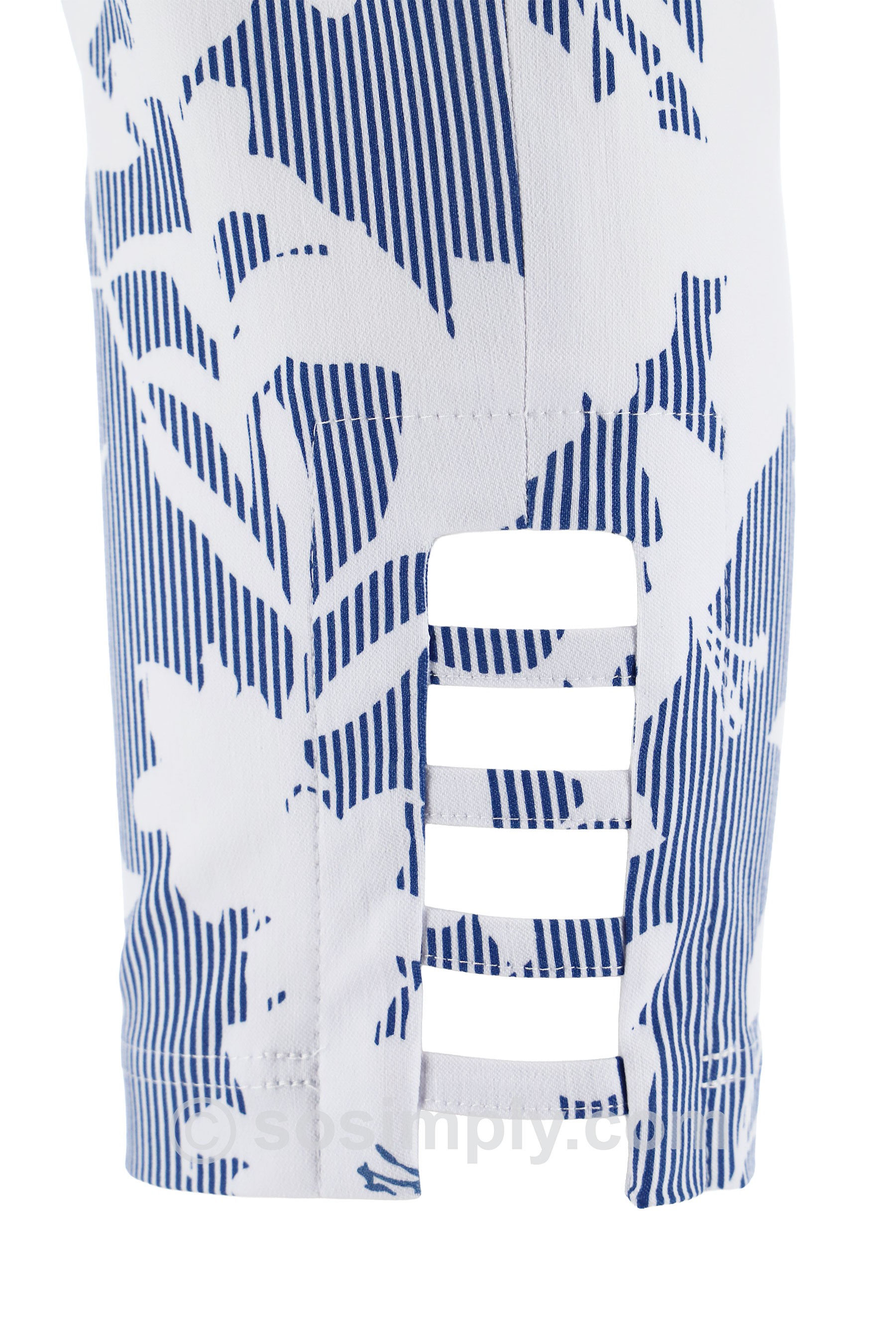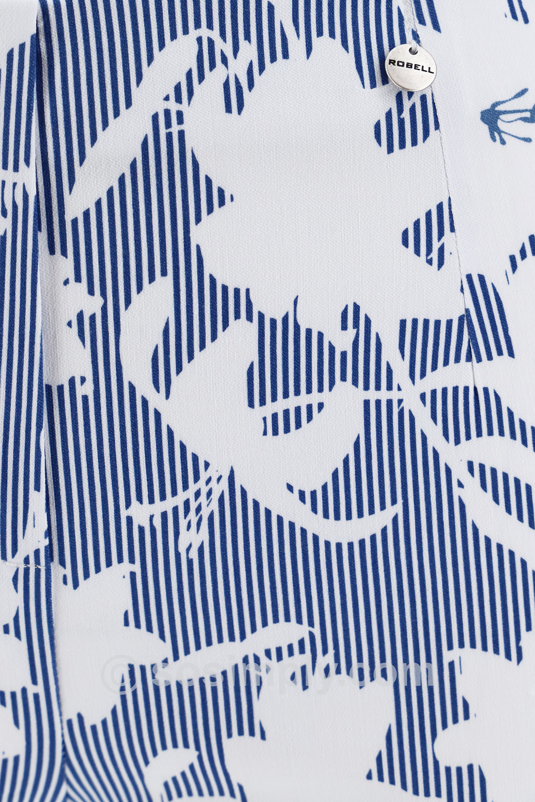 The Robell Lena 09 Stripe Leaf Mono Ankle Grazer features a striking stripe leaf mono print that blends crisp vertical pinstripes with soft, oversized leaf motifs. The contrast of clean lines and organic shapes creates a fresh, modern look, while the monochrome palette keeps the design sophisticated and easy to style. This distinctive pattern elongates the leg and adds visual interest without overwhelming, making it a perfect statement piece for effortless summer dressing.