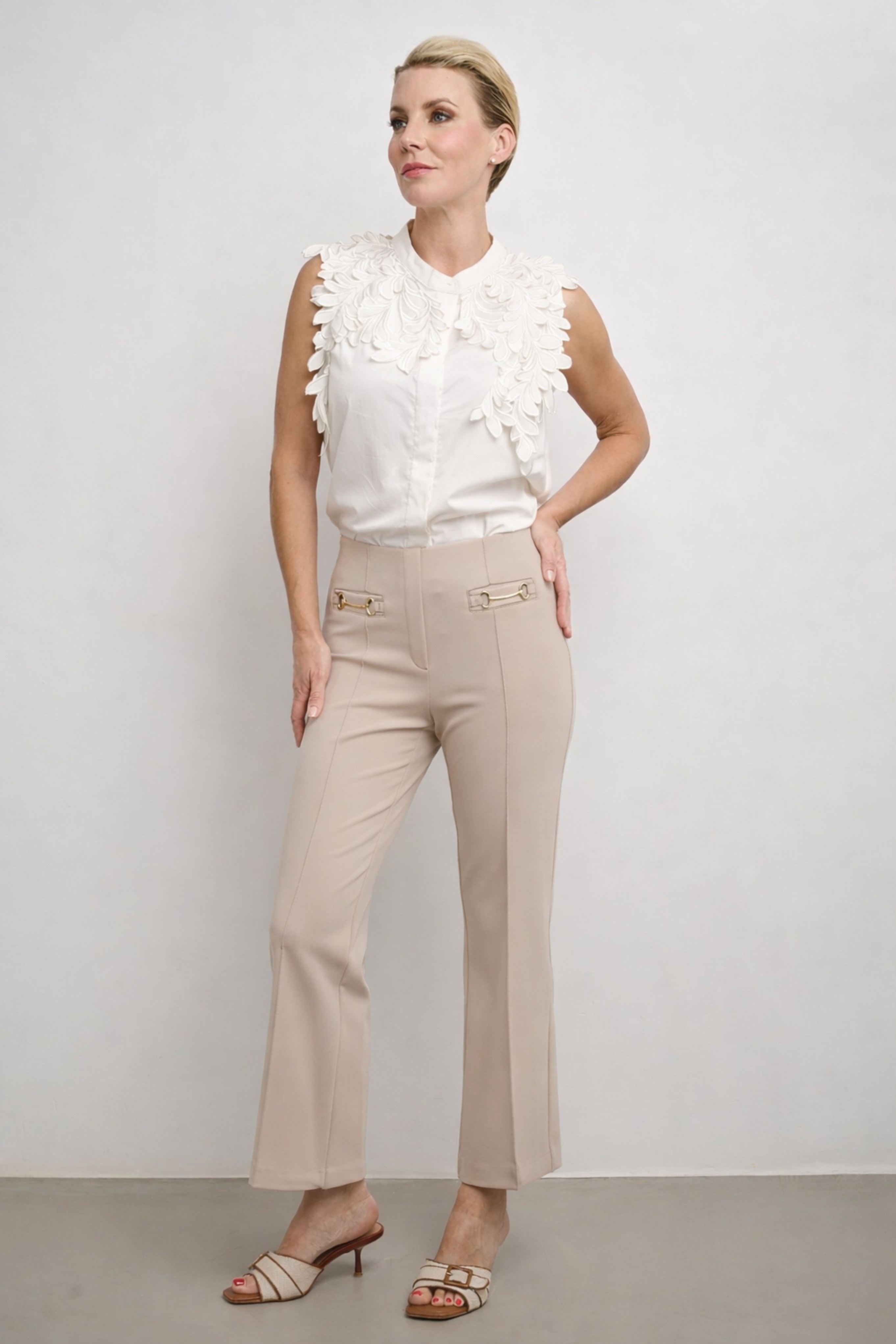 Crafted from a premium viscose blend with added stretch, the Joella 09 delivers a smooth, streamlined fit with a refined pull-on waistband. Finished with elegant gold snaffle detailing, this polished design transitions seamlessly from office wear to evening occasions, making it a versatile essential for Summer 2026.
