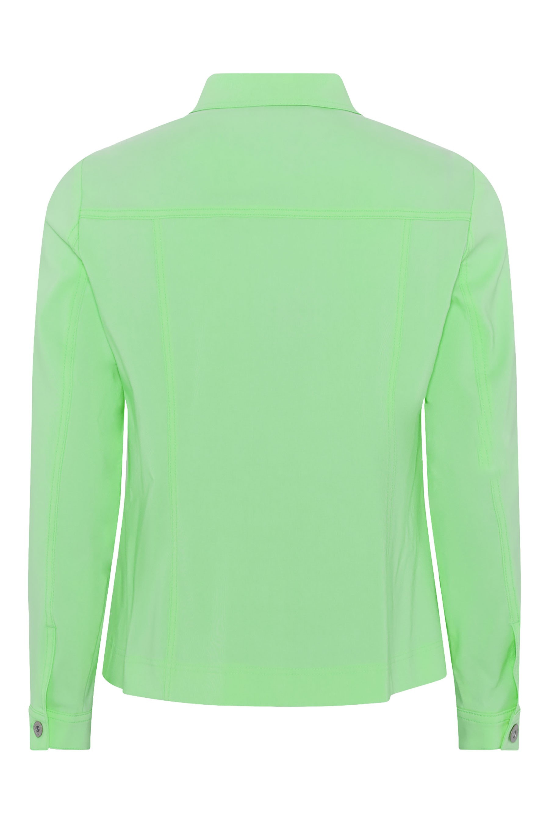 - Front button fastening and top-stitched seams