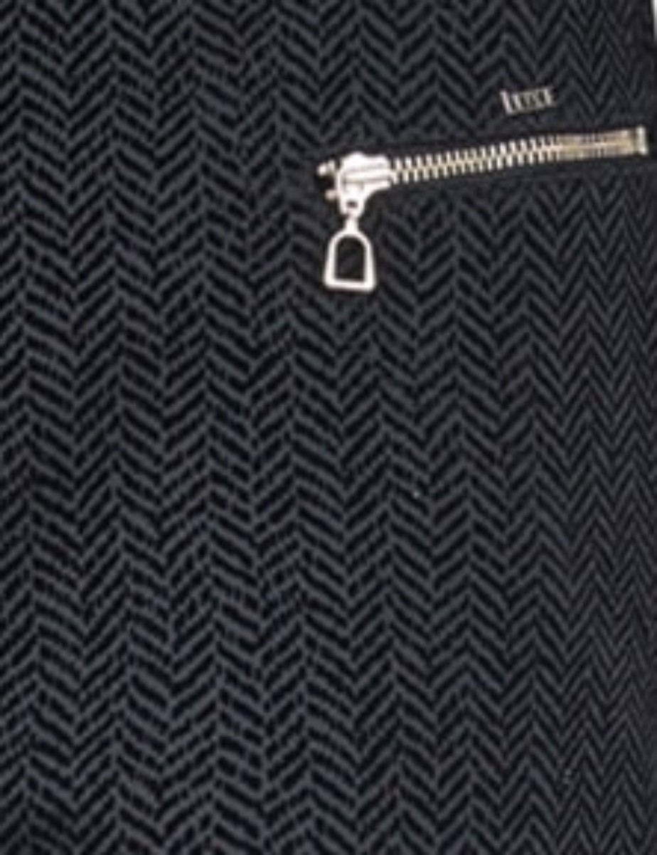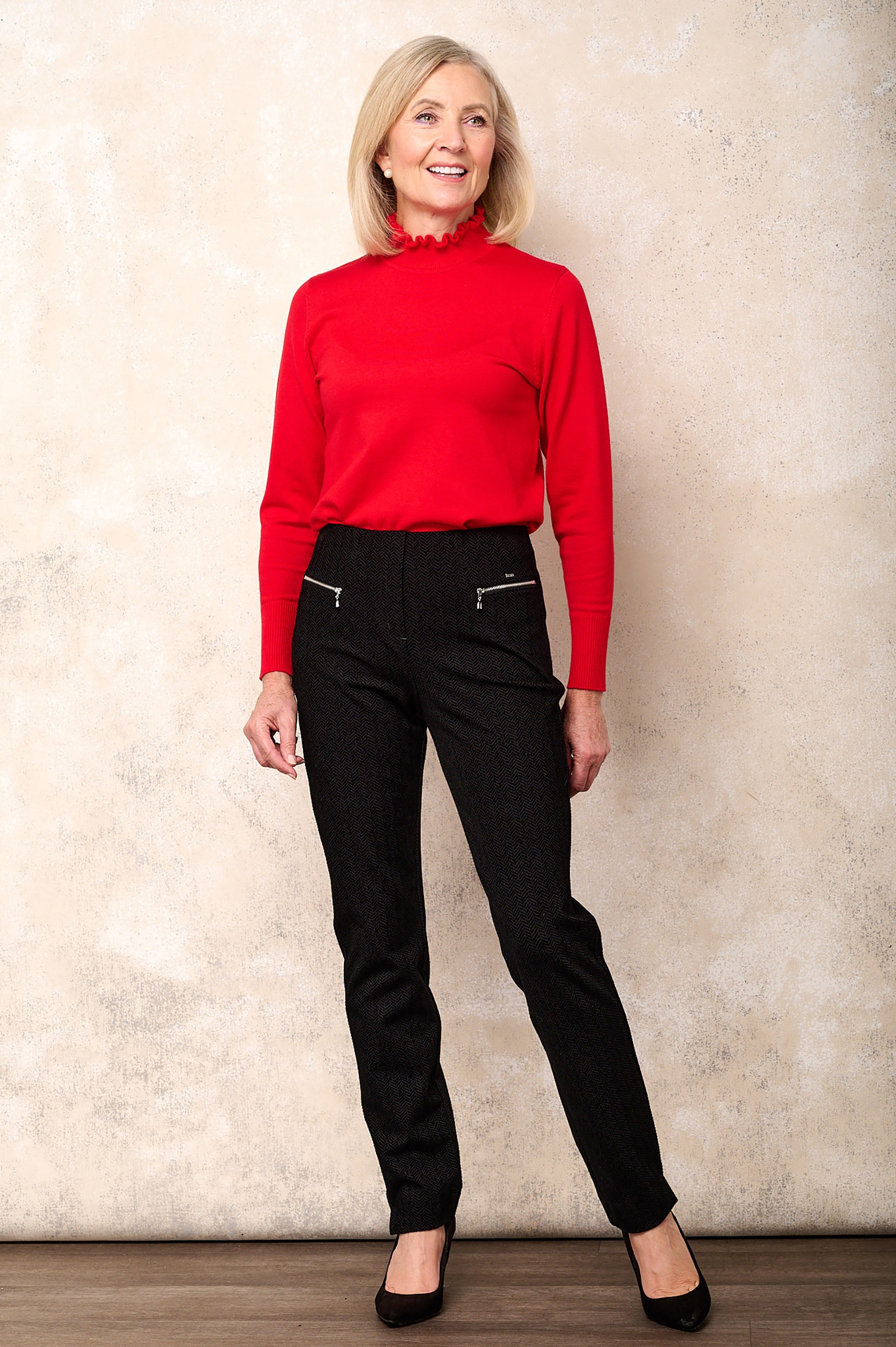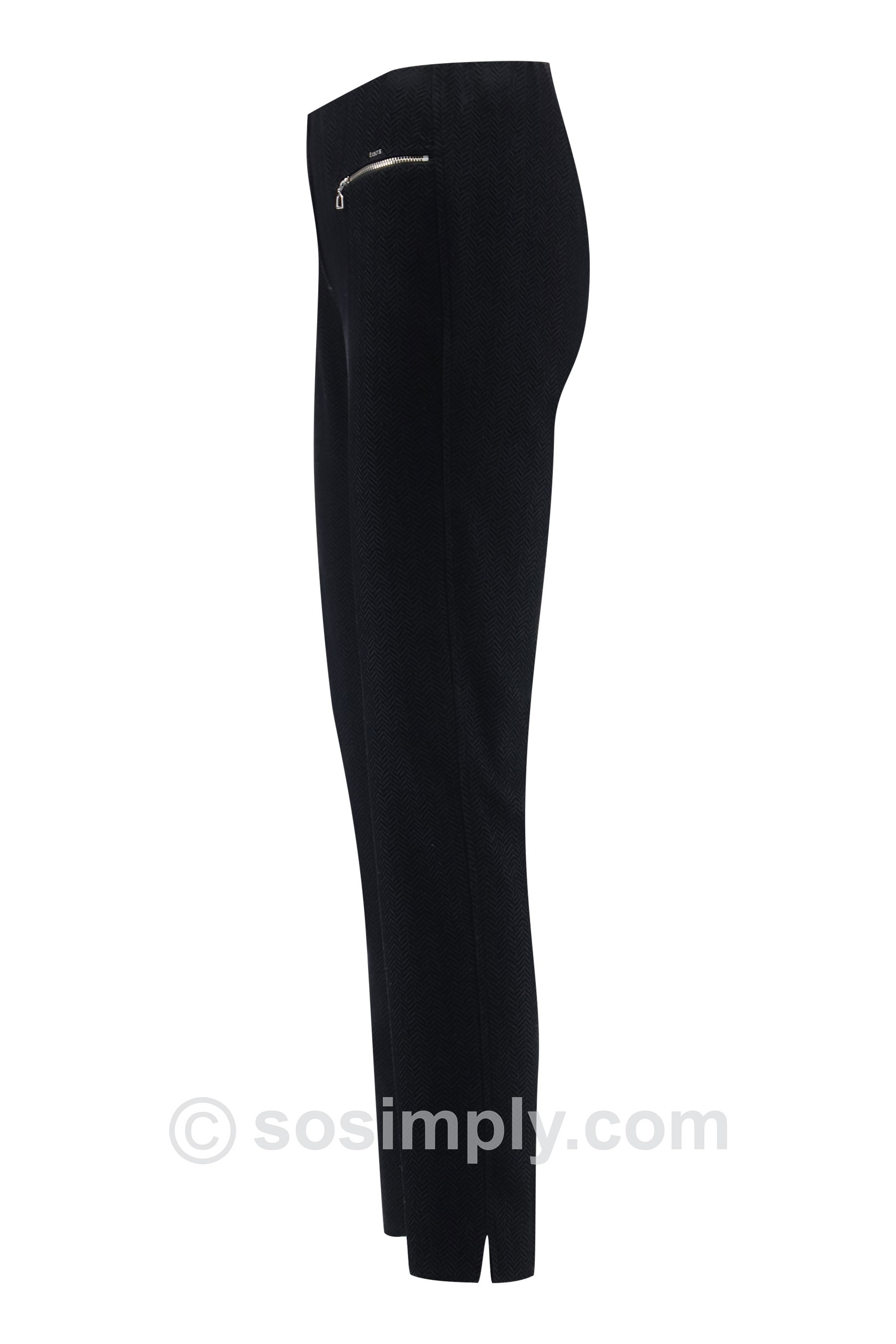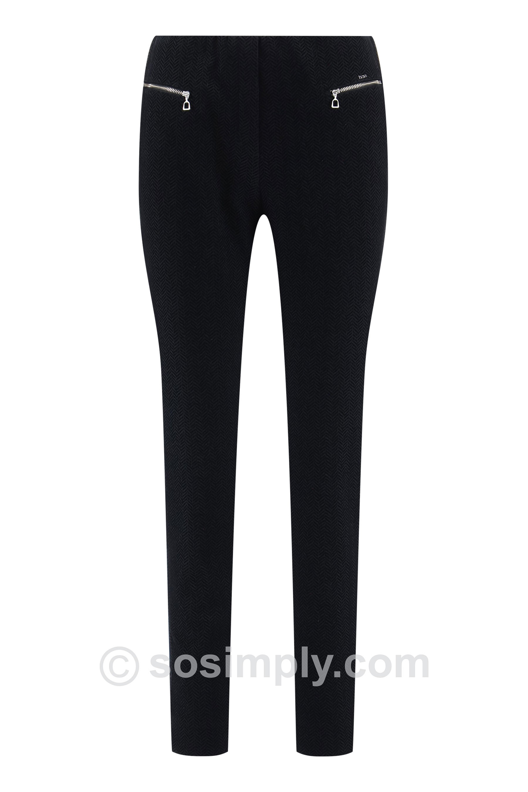 • Elasticated waistband with false zip front for a neat, pull-on finish