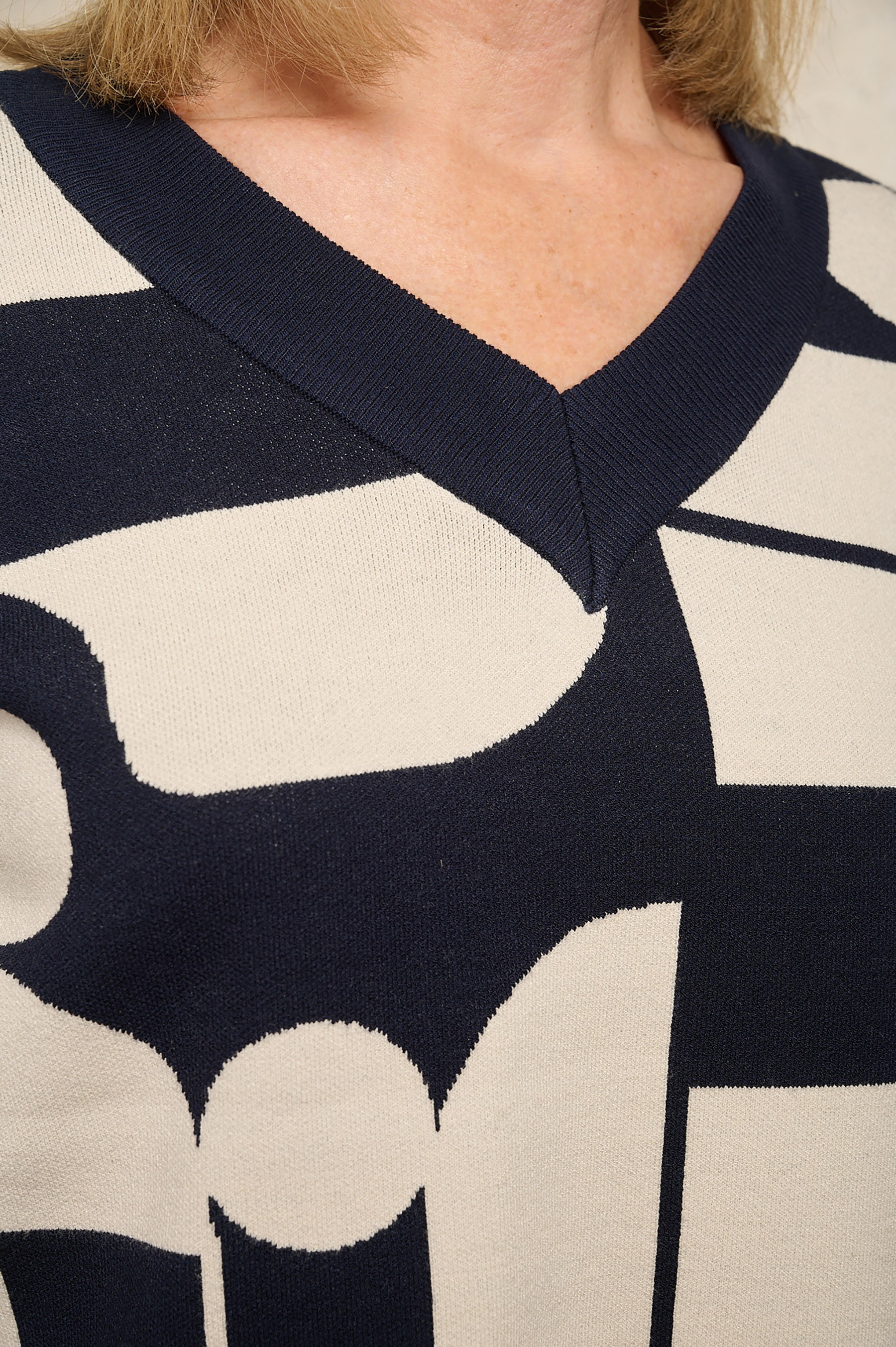 Available in two sophisticated colourways — Navy Abstract and Pebble Abstract — this is a standout knit you’ll reach for season after season.