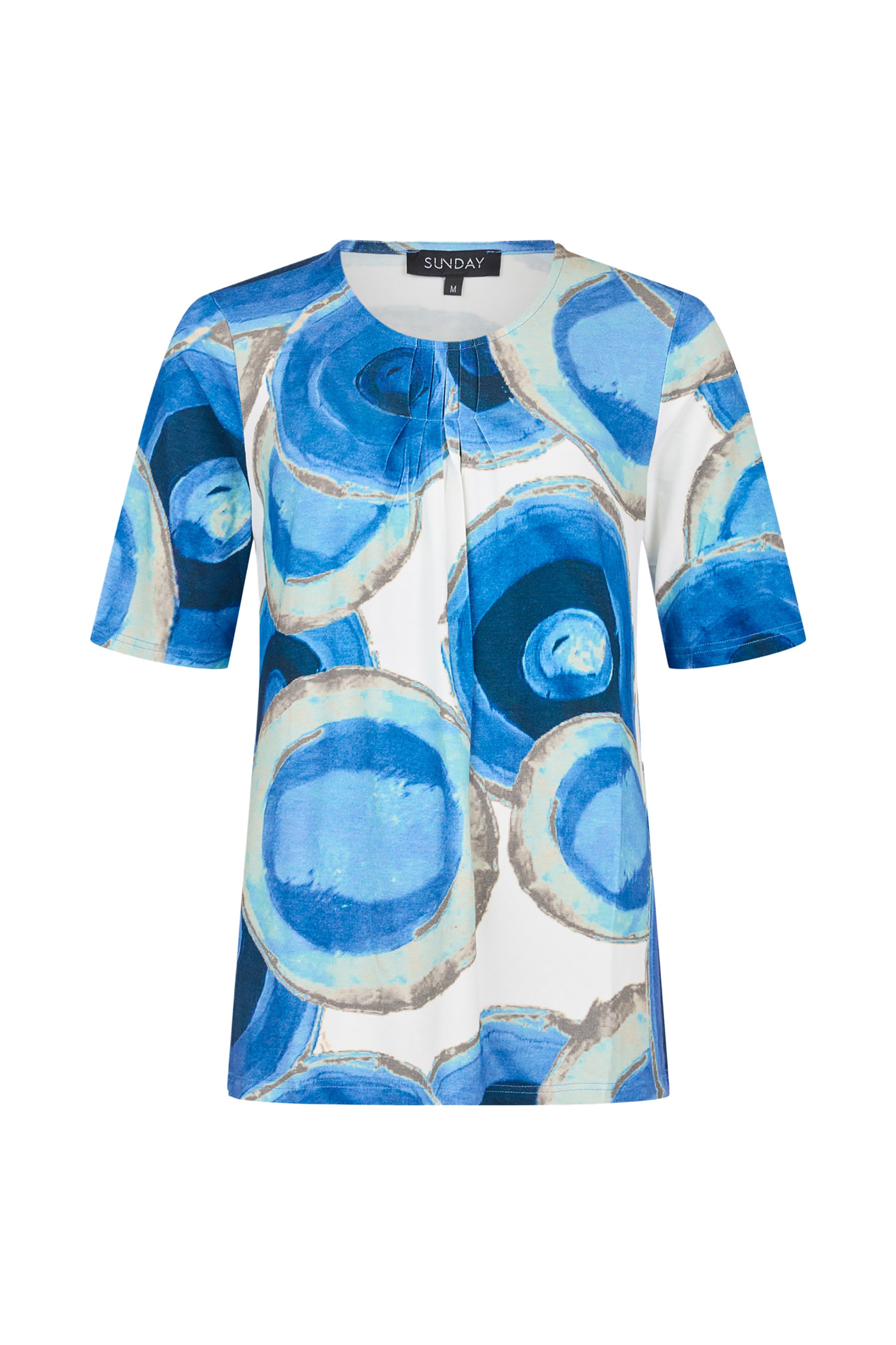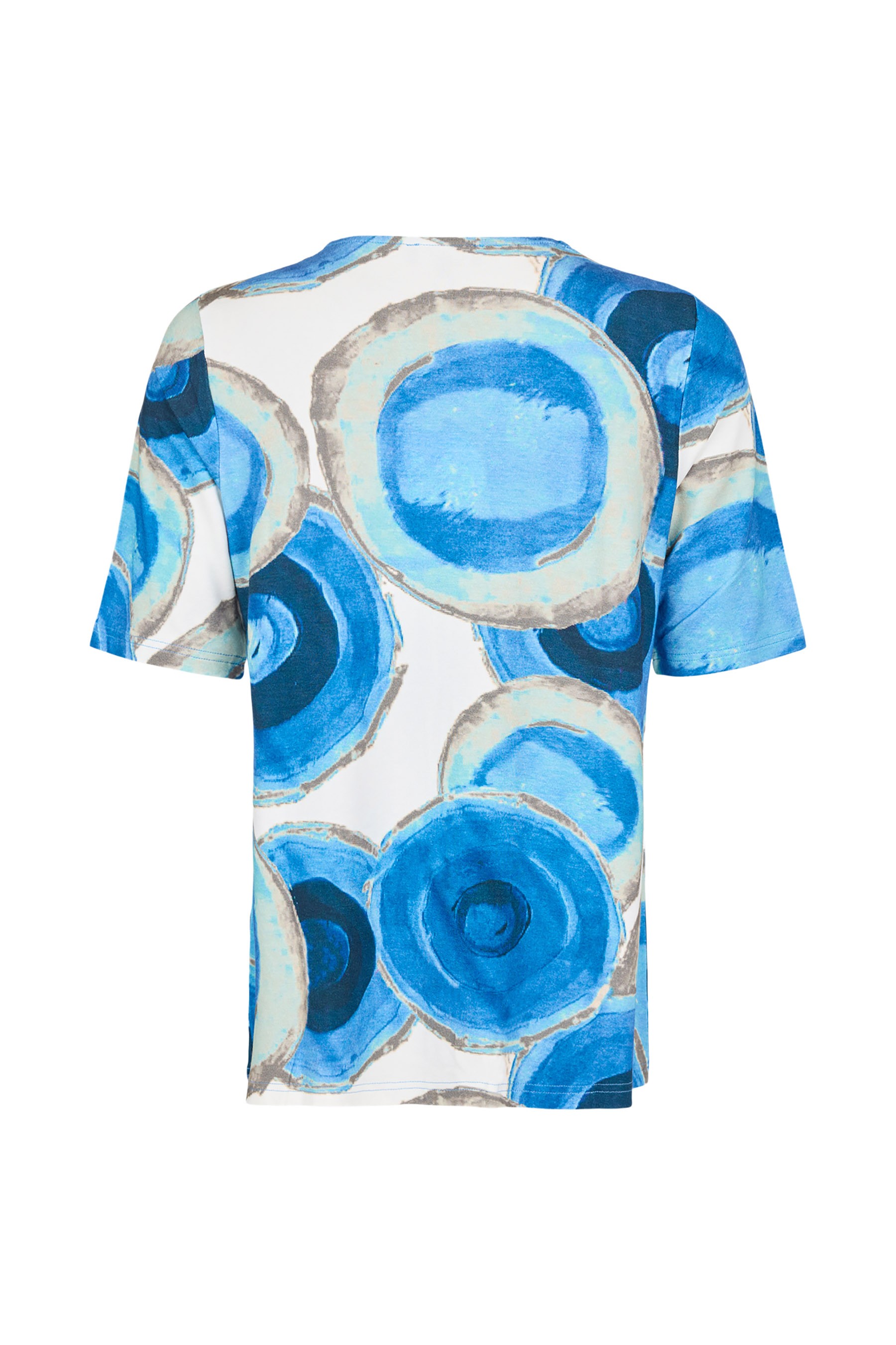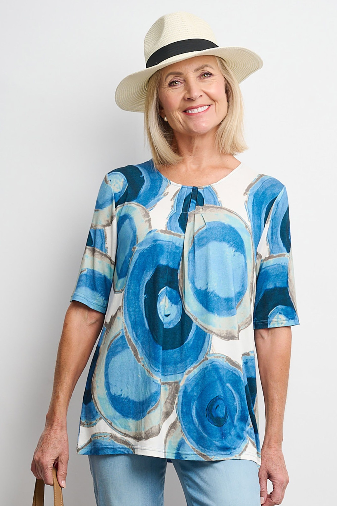 A striking blend of colour and artistry, the Sunday Coastal Rings Top brings a fresh, ocean-inspired feel to everyday dressing. Featuring a bold circular print in vibrant shades of blue, this piece evokes fluid movement and modern elegance. Crafted from a soft, stretch-infused jersey, it offers a lightweight, breathable finish for all-day comfort.