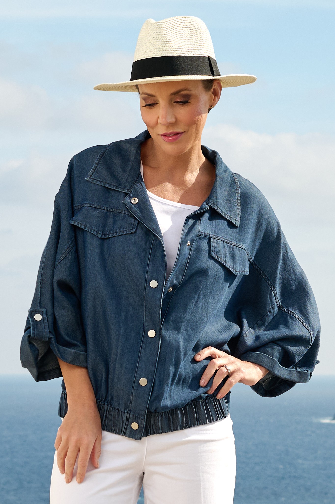 The Sunday Devinna Denim Jacket brings a fresh, contemporary edge to everyday layering. Crafted from luxuriously soft 100% lyocell, it offers breathable comfort with a beautifully fluid, lightweight denim finish. Designed with a relaxed yet refined silhouette, this piece features a softly elasticated hem that gently defines the waist, balancing structure with ease.