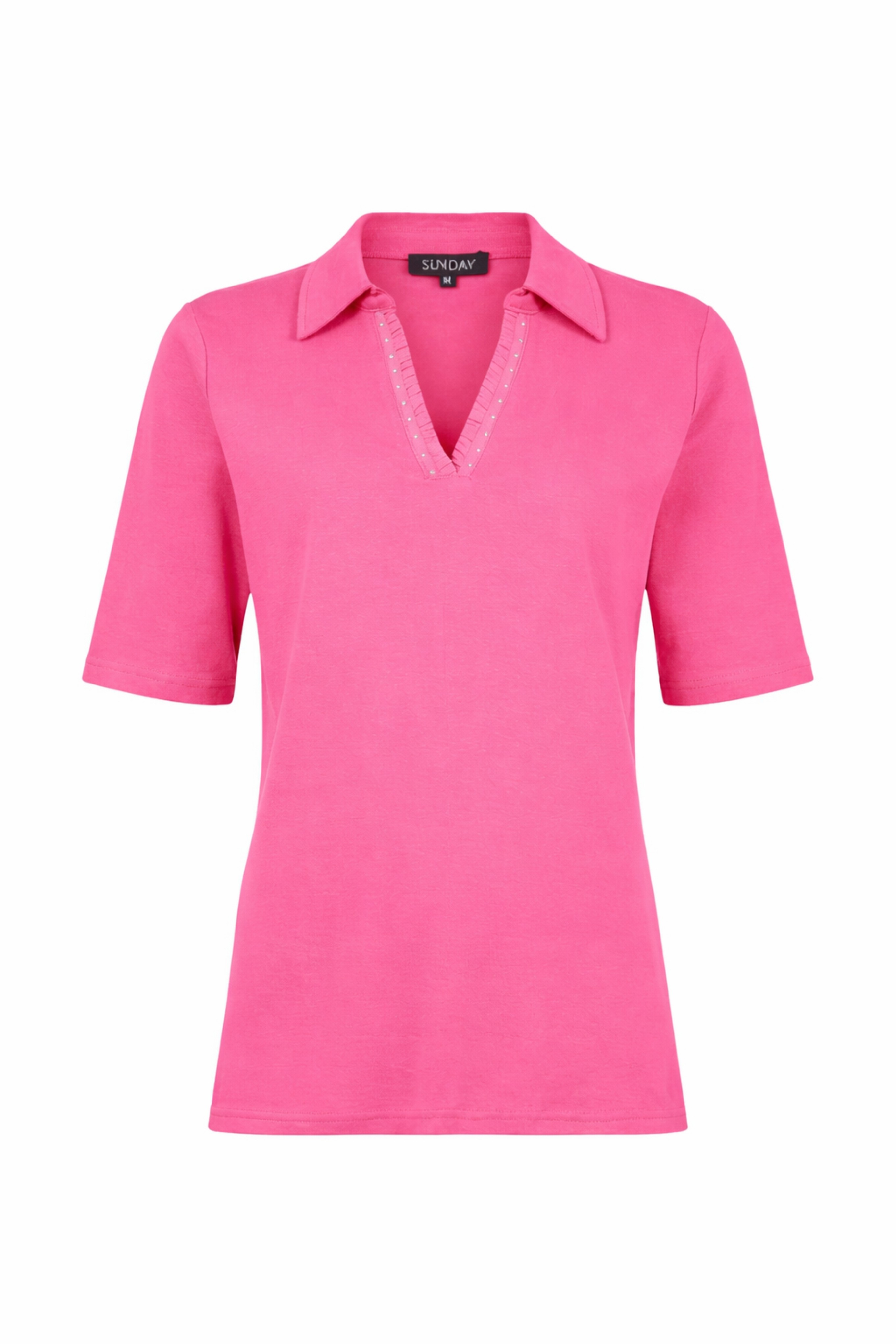 Sunday Diamante V-Neck Collared Cotton T-Shirt