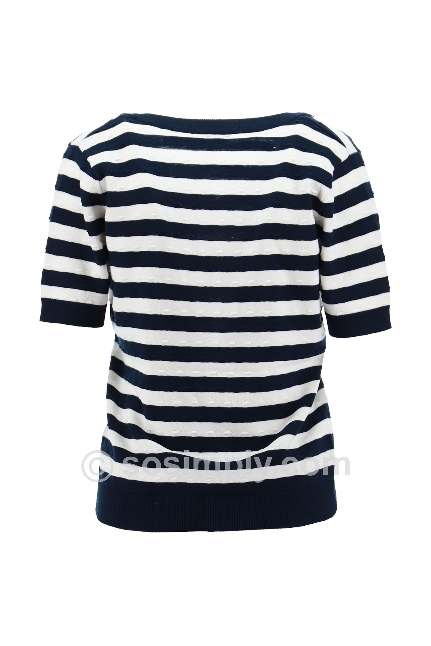 Available in fresh navy/white and vibrant blush/white, this versatile piece pairs seamlessly with everything from tailored trousers to casual denim, making it a staple for modern, everyday dressing.