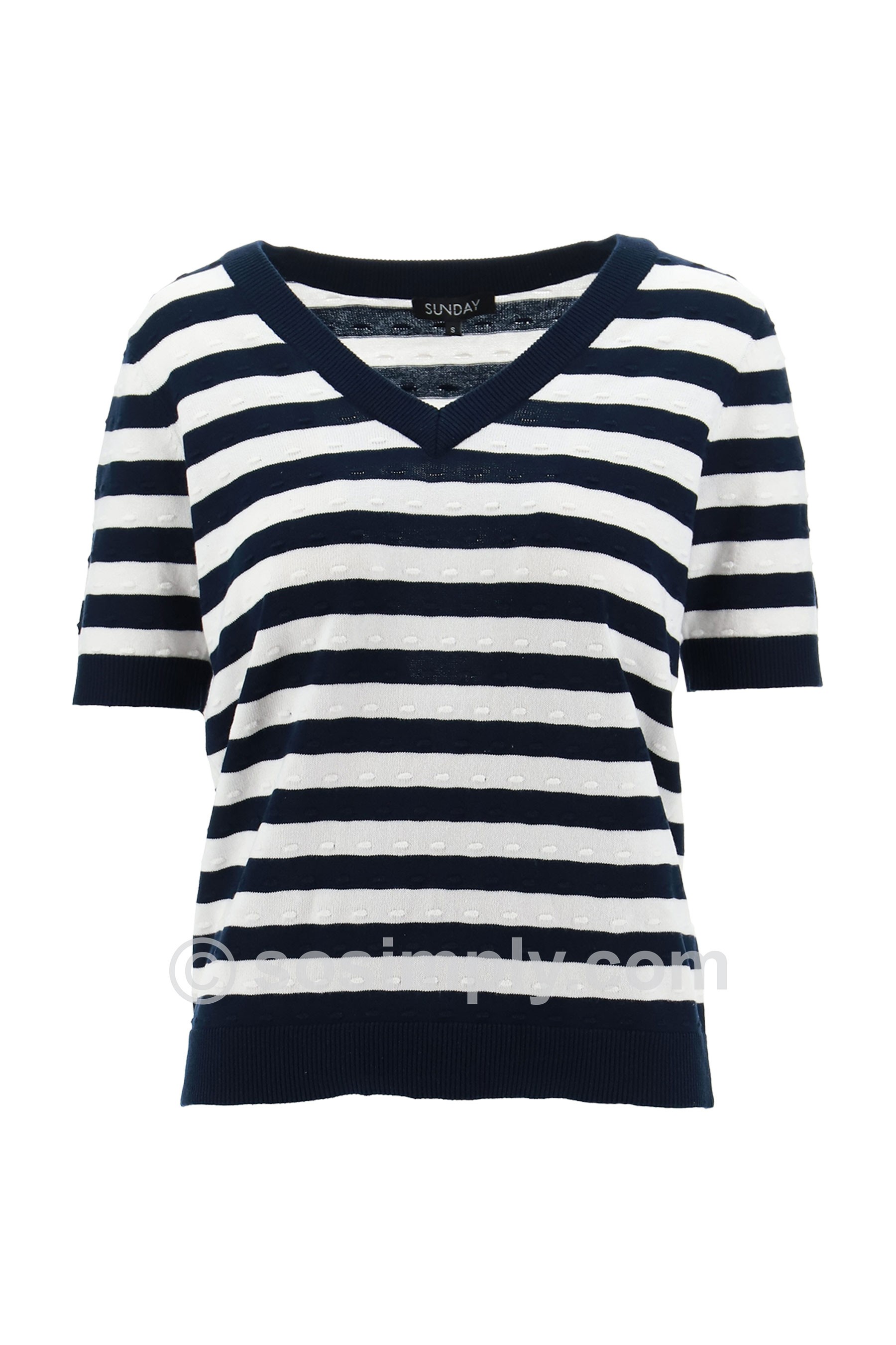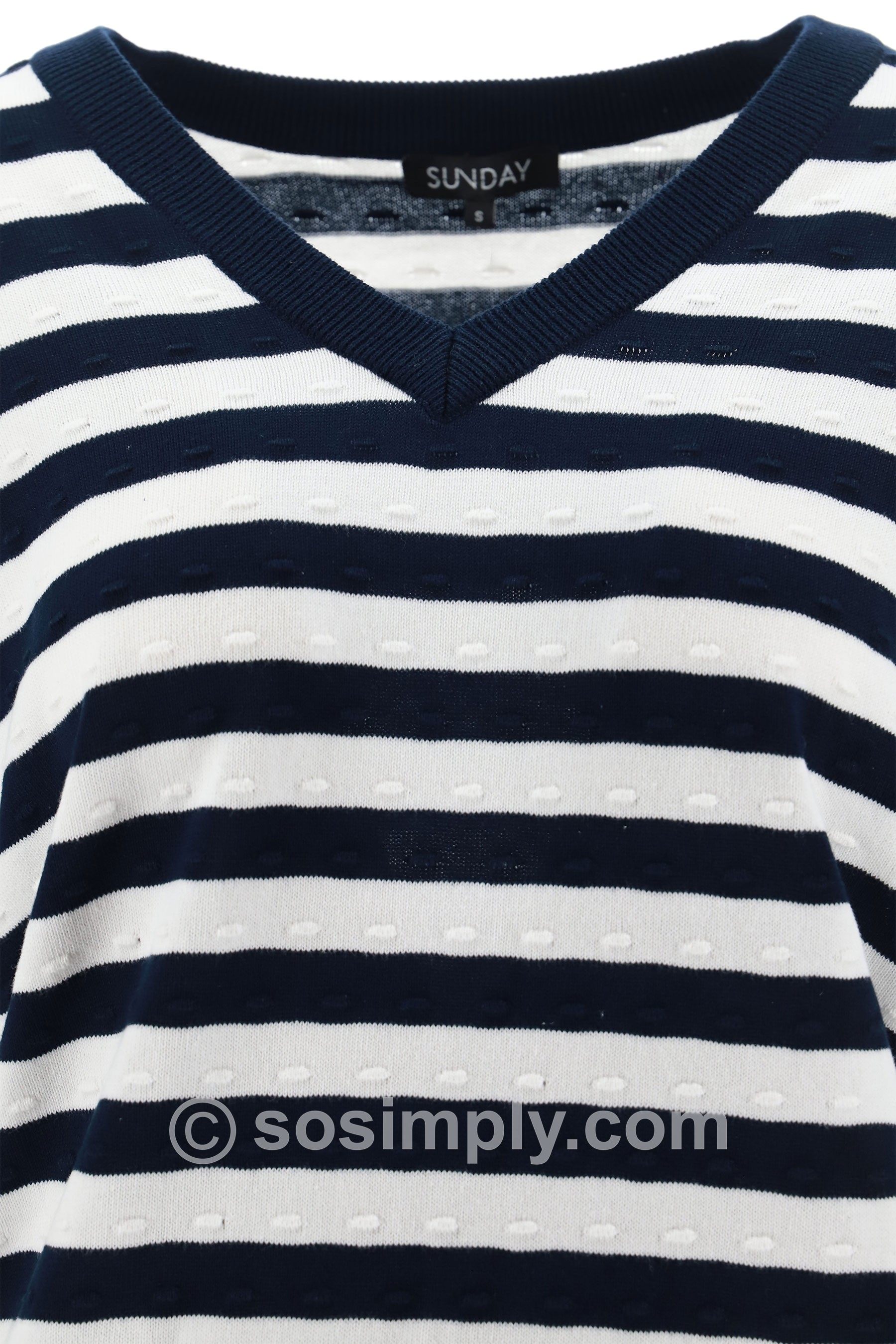Effortlessly chic with a timeless coastal influence, the Sunday Riviera Stripe Top is a refined take on classic summer knitwear. Crafted from pure cotton, it offers a naturally breathable, lightweight feel—perfect for warm days and easy layering. The textured stripe design adds subtle depth, while the flattering V-neckline and softly structured silhouette create a polished yet relaxed look.
