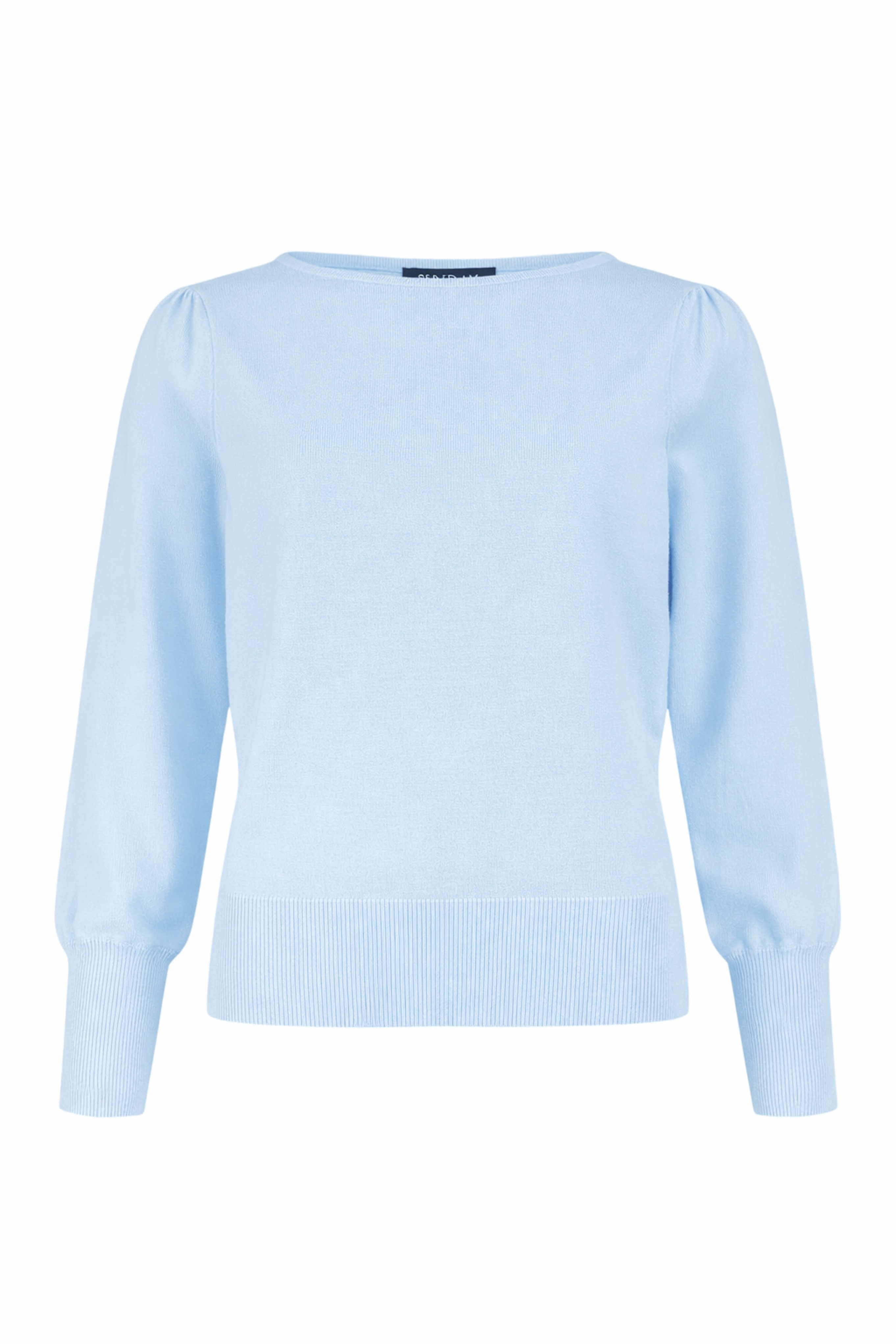 The Sunday Mellie Jumper is a soft, feminine knit designed with clean lines and subtle detail for effortless everyday elegance. Crafted in a beautiful pale blue tone, this jumper features gently pleated shoulders and a fitted silhouette that flatters without feeling restrictive. The large, oversized crew neckline adds a modern touch, balancing comfort with refined style.