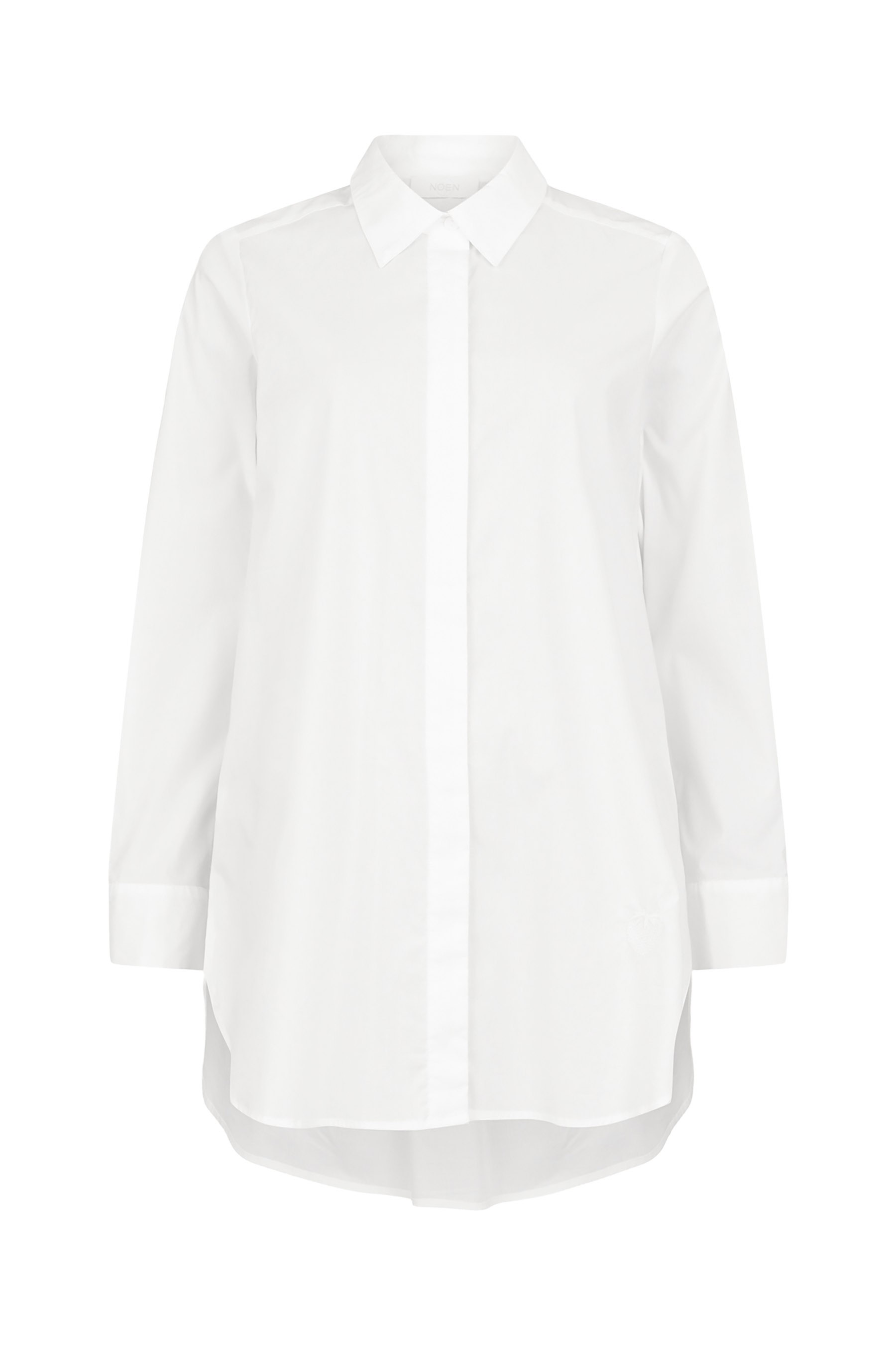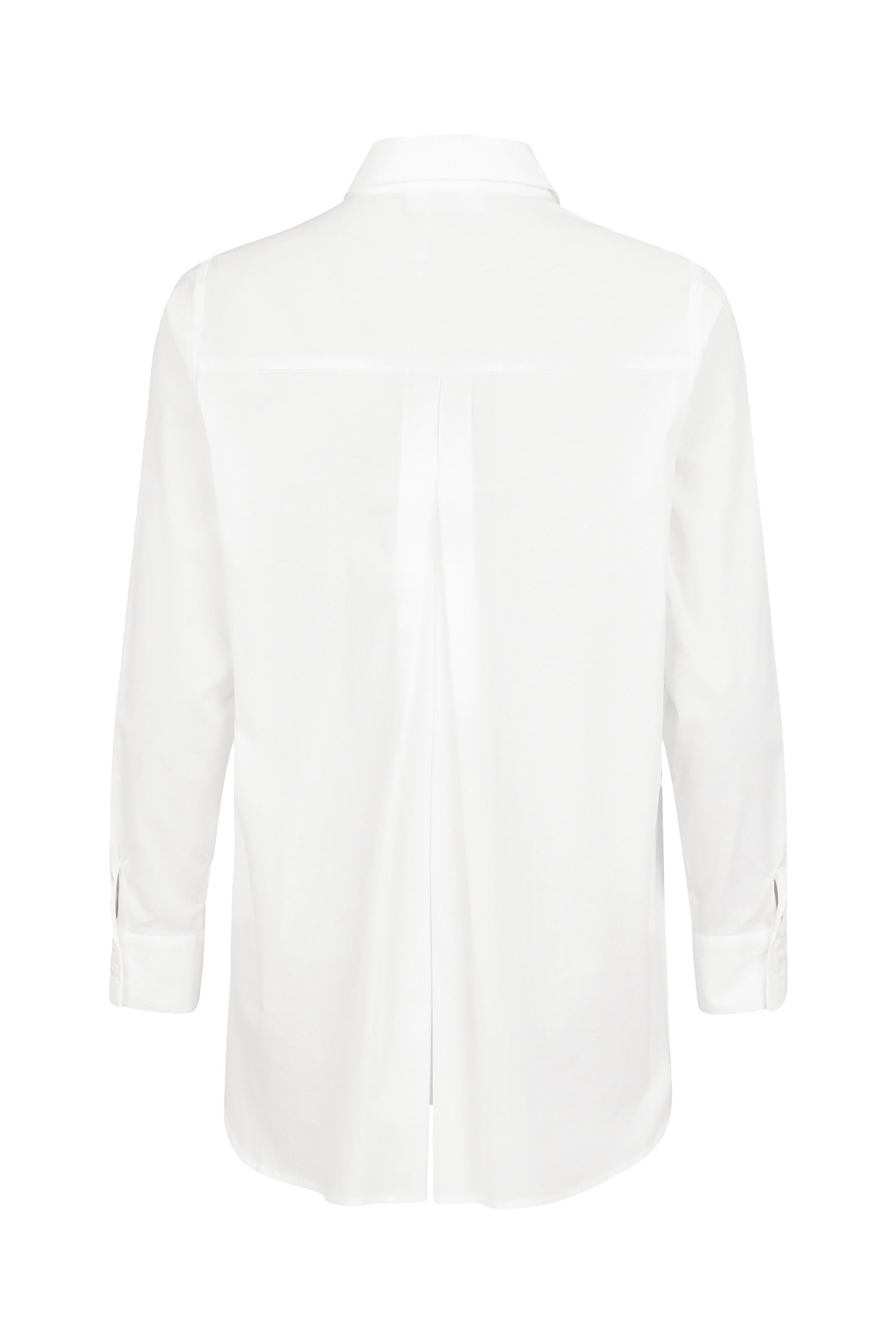It features a classic point collar, long sleeves, and a curved hem for an easy, flattering silhouette. A box split pleat at the back adds extra comfort and movement.