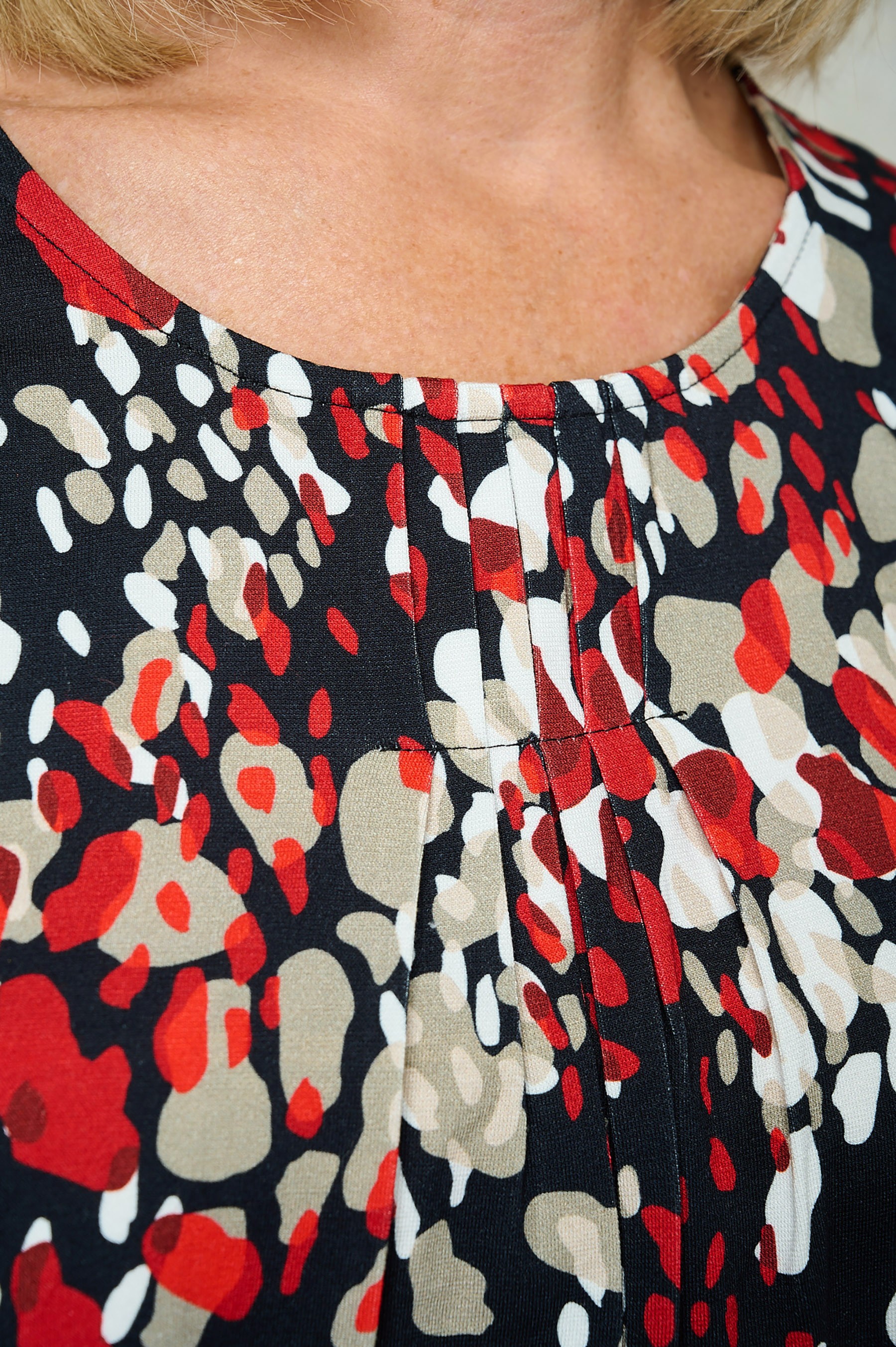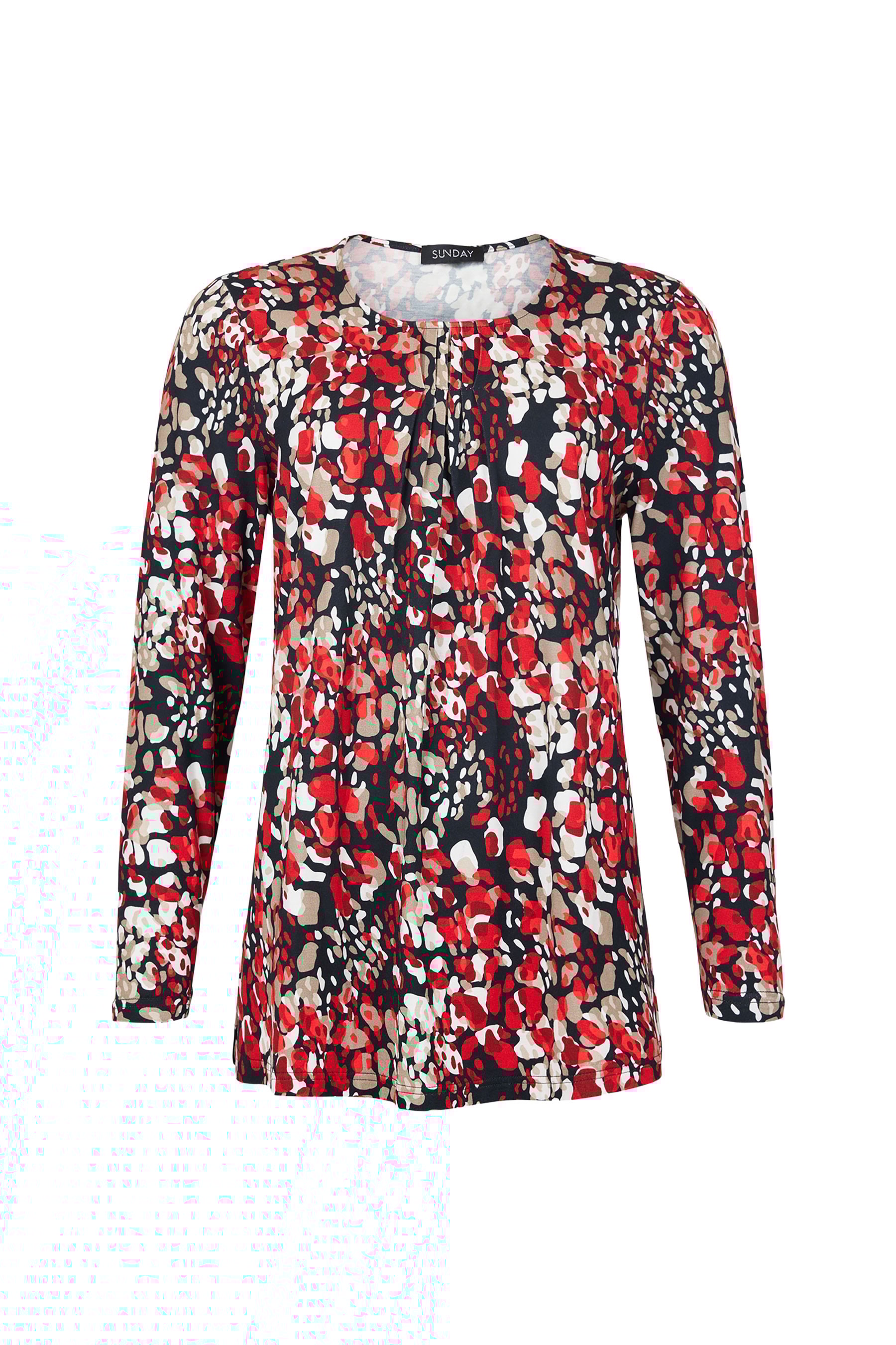 Infuse colour and confidence into your everyday style with the Sunday Nea Abstract Tunic Top. Showcasing a striking painterly print in vibrant ruby red, soft beige, and deep navy tones, this easy-wear piece blends comfort with contemporary elegance.