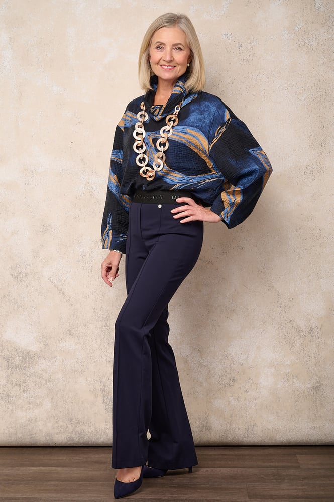 Looking for a new pair of go-to trousers? Browse our selection of women's navy trousers! Made from lightweight and premium super stretchy fabrics, they are as comfortable as they are stylish and are designed for all-day comfort. Choose from a variety of on-trend and figure-flattering cuts in navy hues that offer an effortlessly elegant look no matter the occasion.